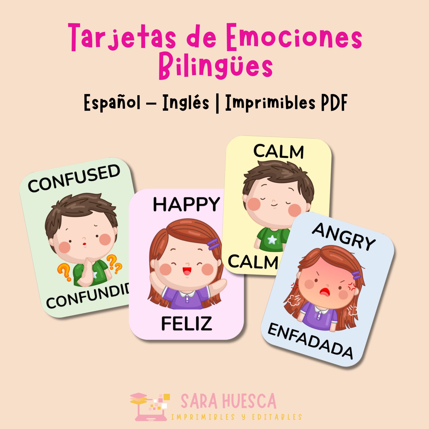 Tarjetas de Emociones Bilingües Español – Inglés | Pack Imprimible PDF + PNG para niños