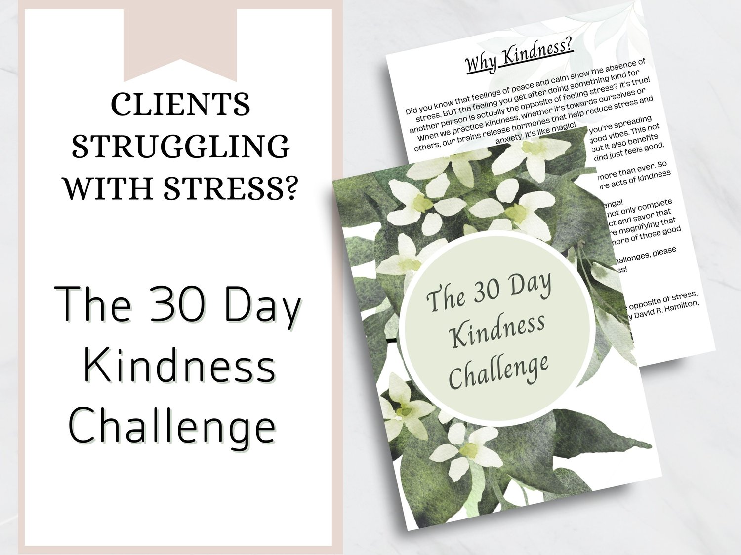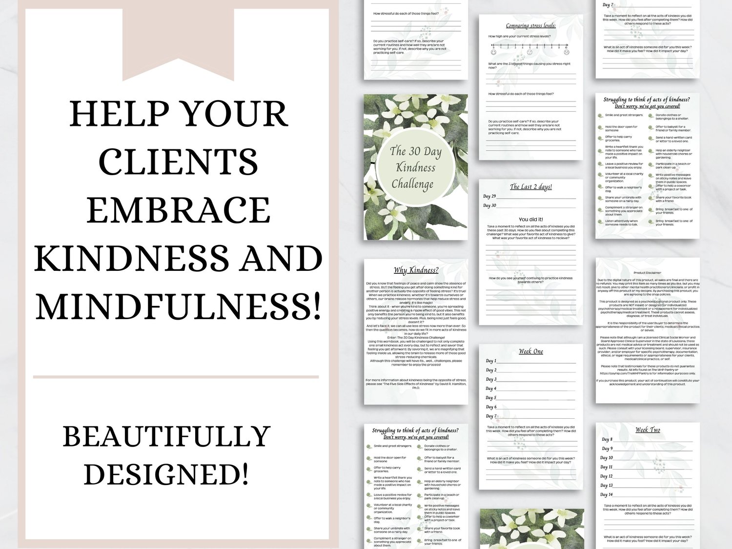 Within this 15 page workbook, your clients will be guided into practicing simple small acts of kindness everyday for 30 days with: