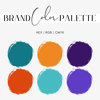 Transform your seasonal marketing materials with our exclusive Halloween-themed Costume Party Color Palette, perfect for adding a dash of festive flair to your branding! This fun and playful color scheme is ideal for seasonal promotions and features a unique blend of dark teal, carrot orange, royal purple, bright burnt orange, robin's egg blue, and neon purple. Each color comes with precise Hex Codes, RGB, and CMYK values, ensuring seamless integration across both print and digital platforms.