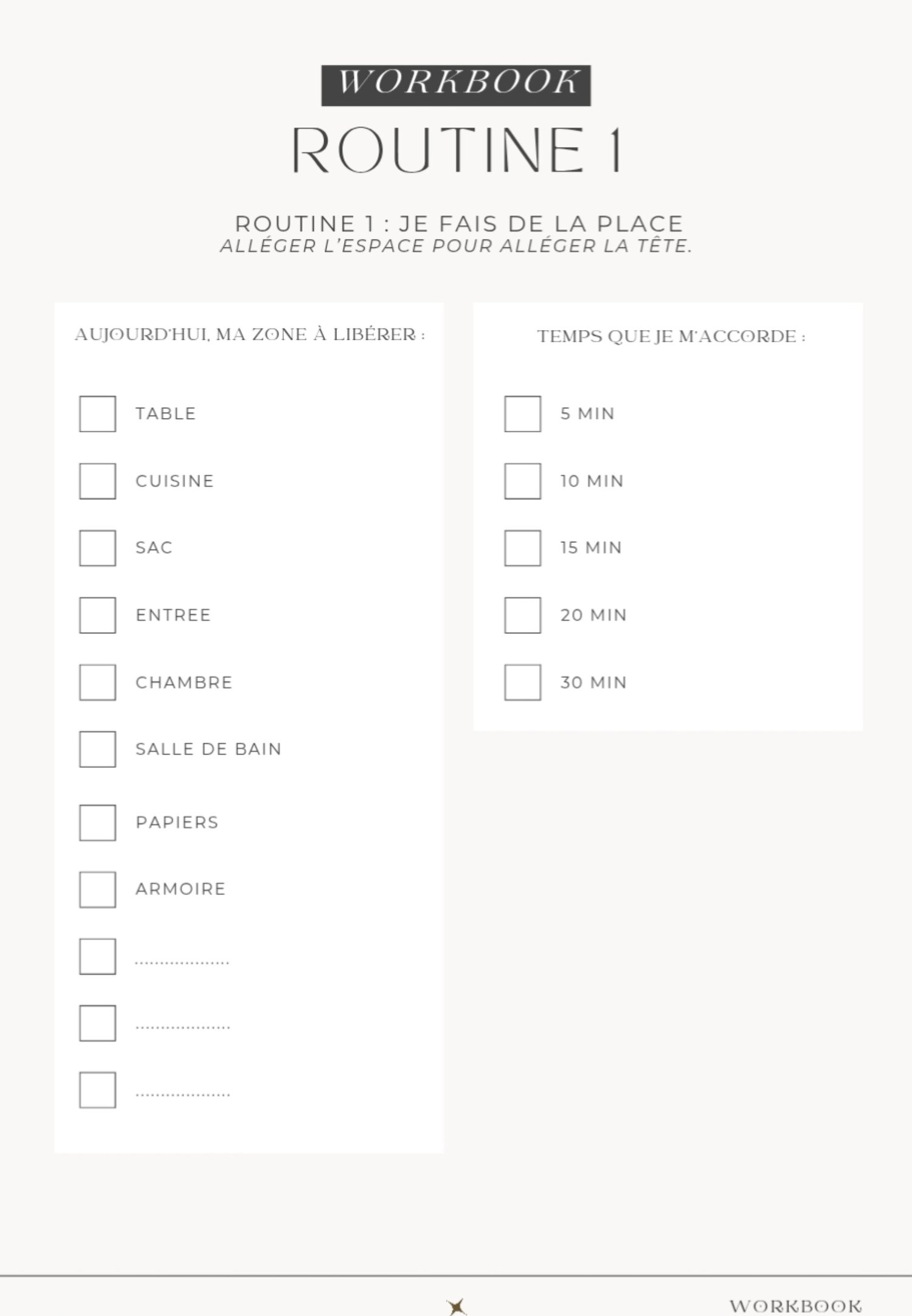 - Routine de nettoyage : je fais de la place (espace clair = esprit clair)