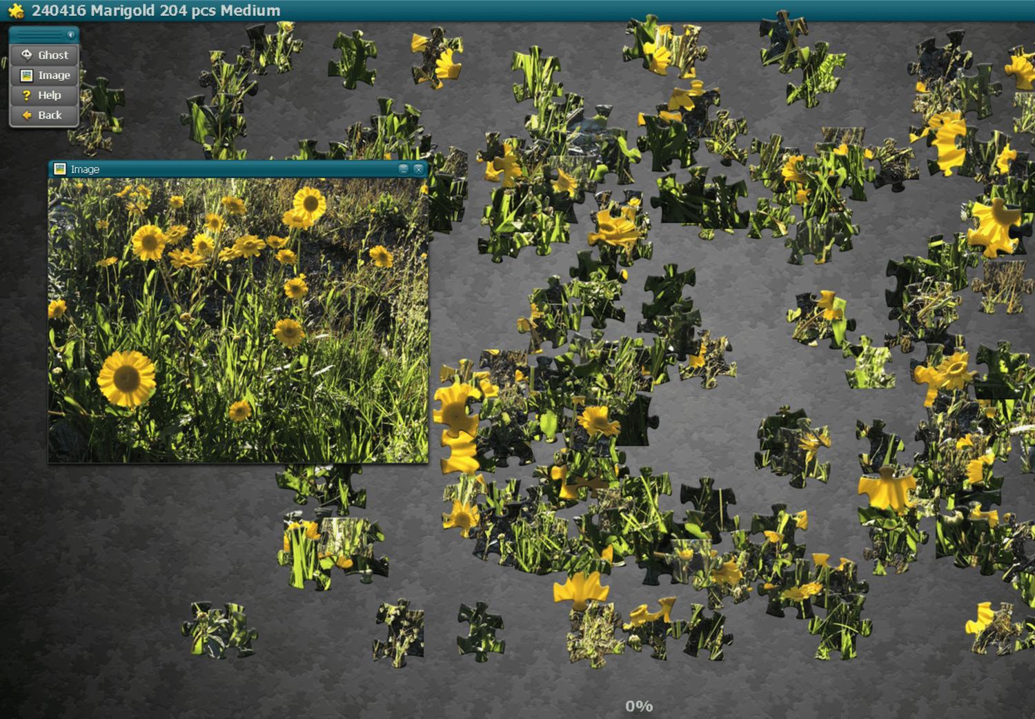 The puzzle game will open in the new window with the pieces scattered across the board.