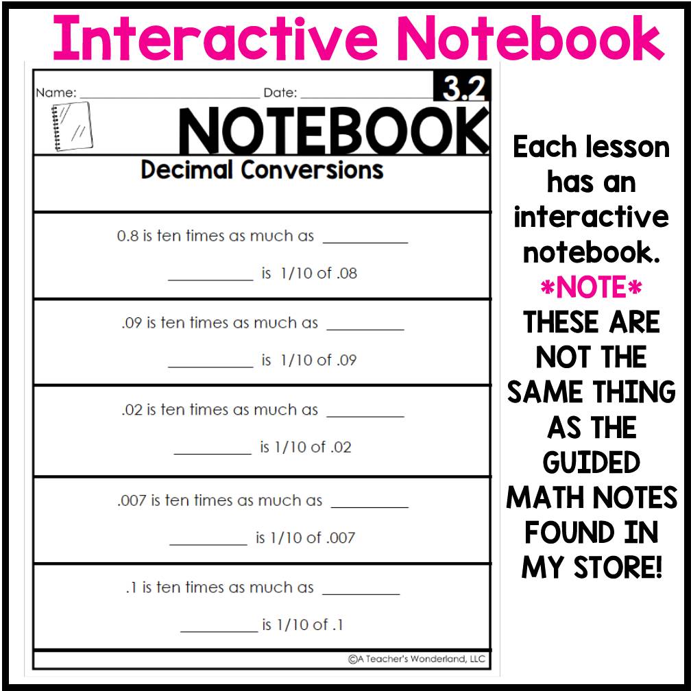 Decimal to Thousandths 5th Grade Guided Math Worksheets Activities Lessons