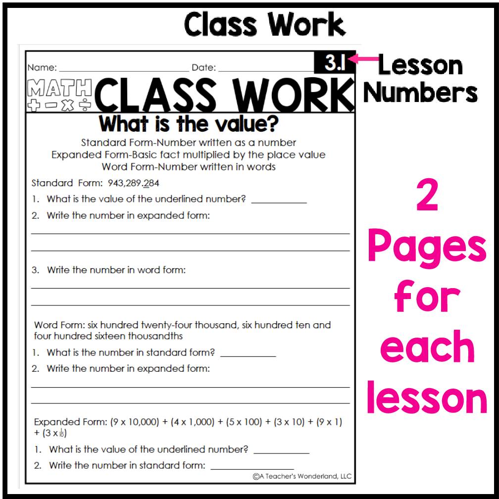 - 2 Classwork Pages – Guided practice to apply the lesson