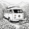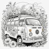 Discover the charm of the classic VW bus in this unique coloring book, featuring 4 stunning, hand-drawn illustrations perfect for coloring enthusiasts of all ages! Embrace the spirit of freedom and nature as you color intricate scenes of the iconic hippie VW bus: