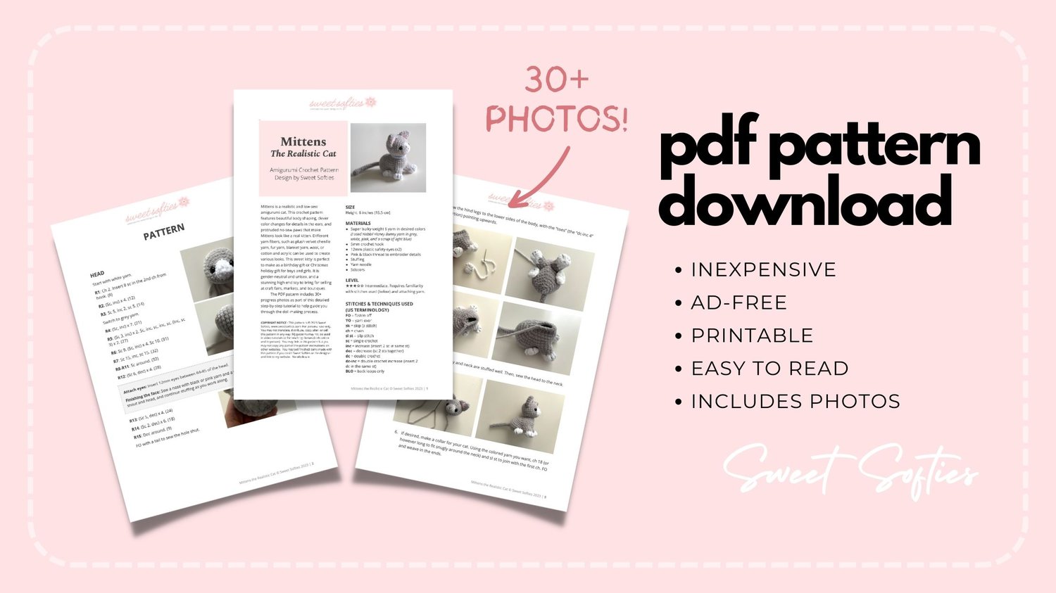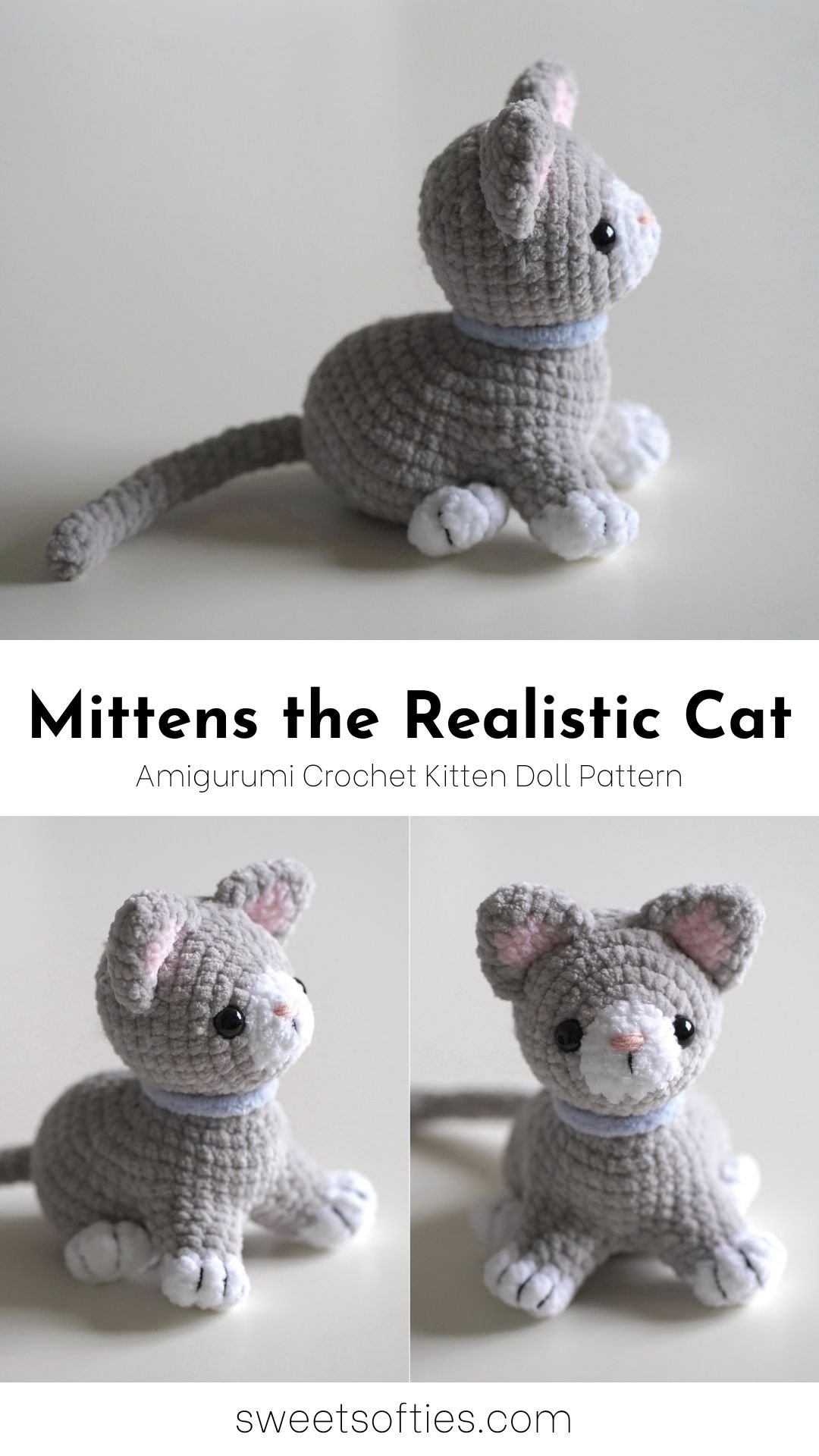 Pattern info at: https://www.sweetsofties.com/2023/12/mittens-realistic-cat.html