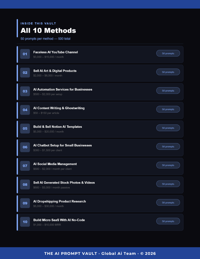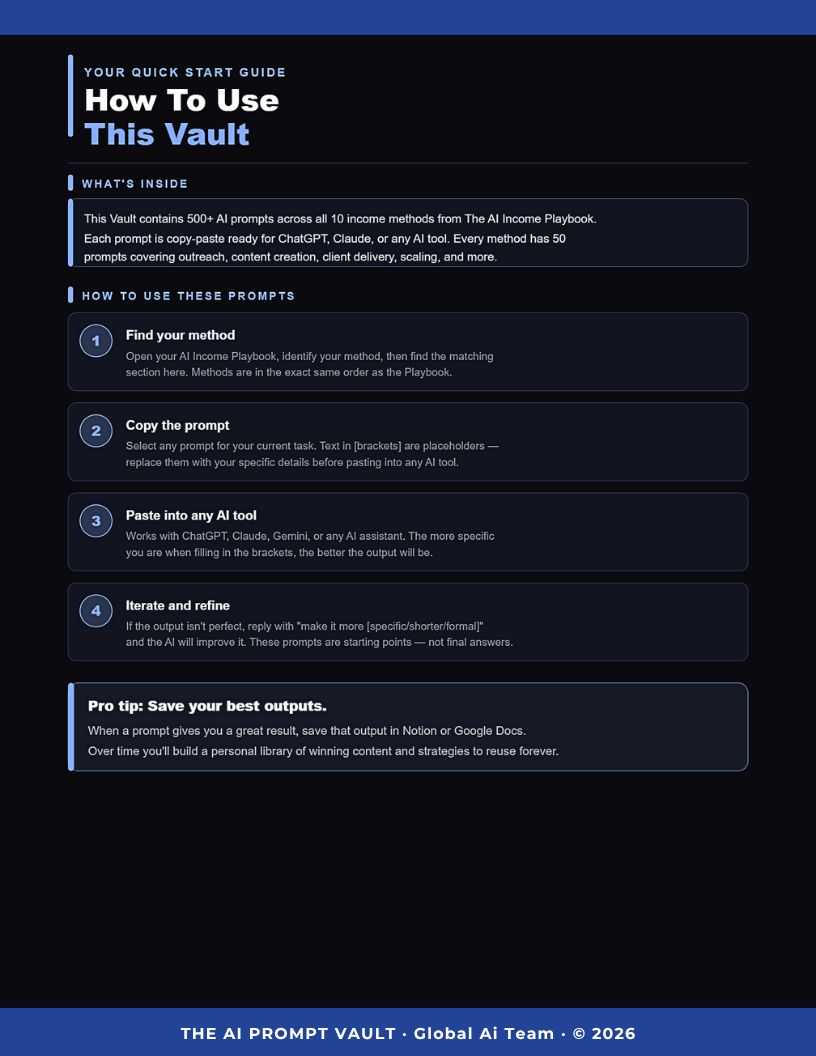 The AI Prompt Vault: 500+ Copy-Paste AI Prompts for All 10 Income Methods