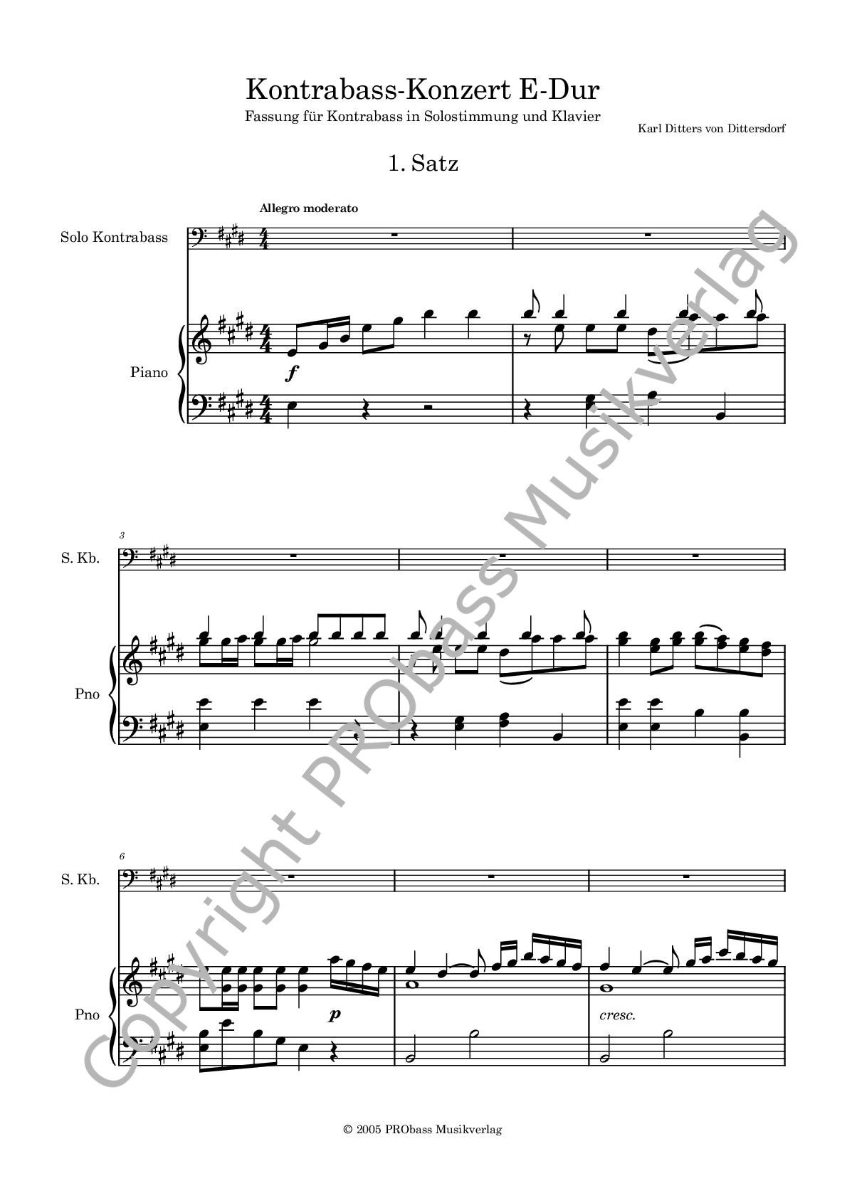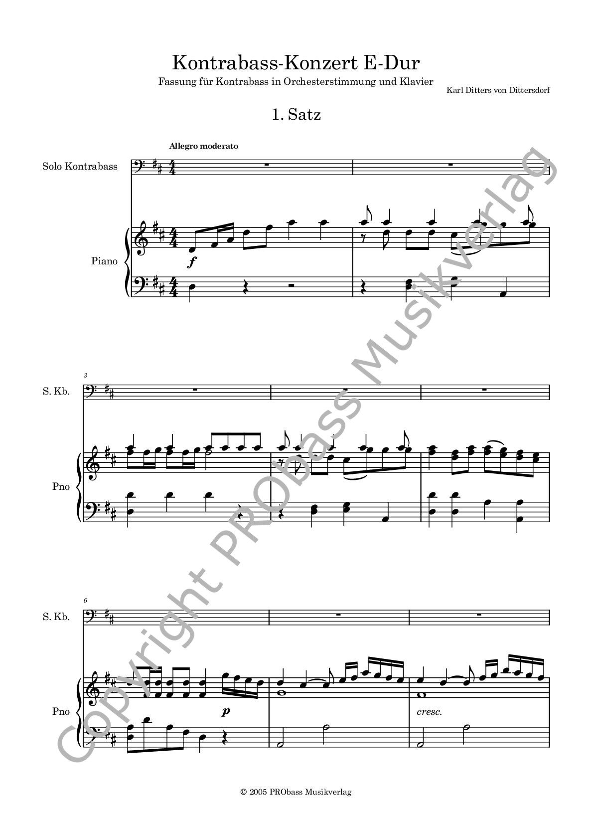 K. D. von Dittersdorf: Kontrabass-Konzert E-Dur