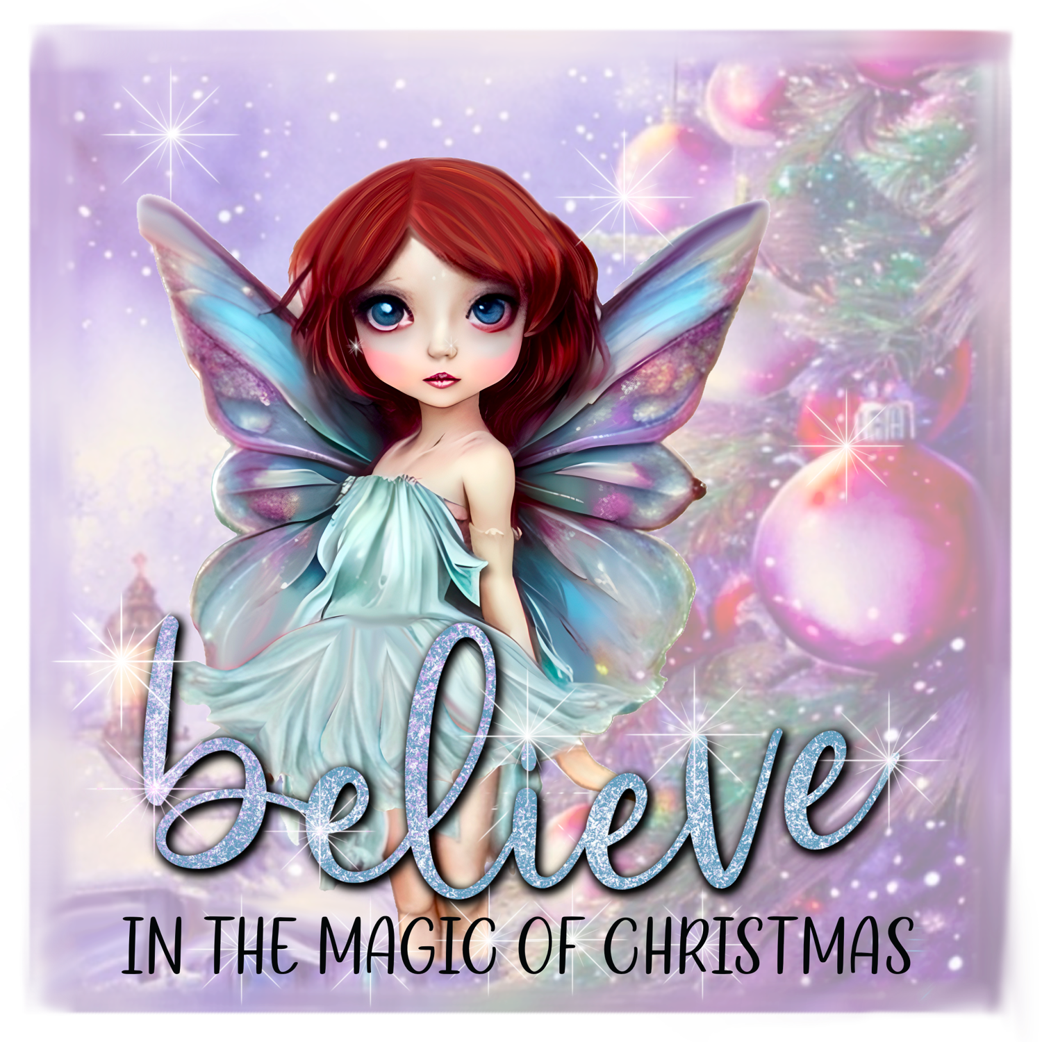 Christmas fairy on a stunning Christmas background “I believe in the magic of Christmas”. 1 file