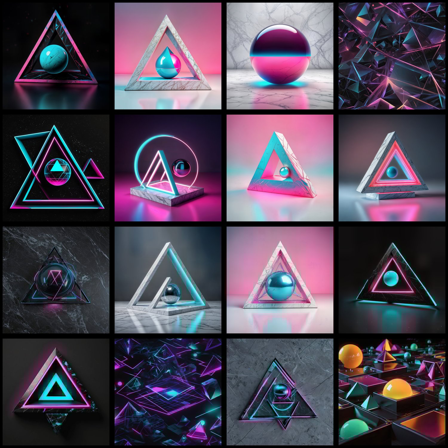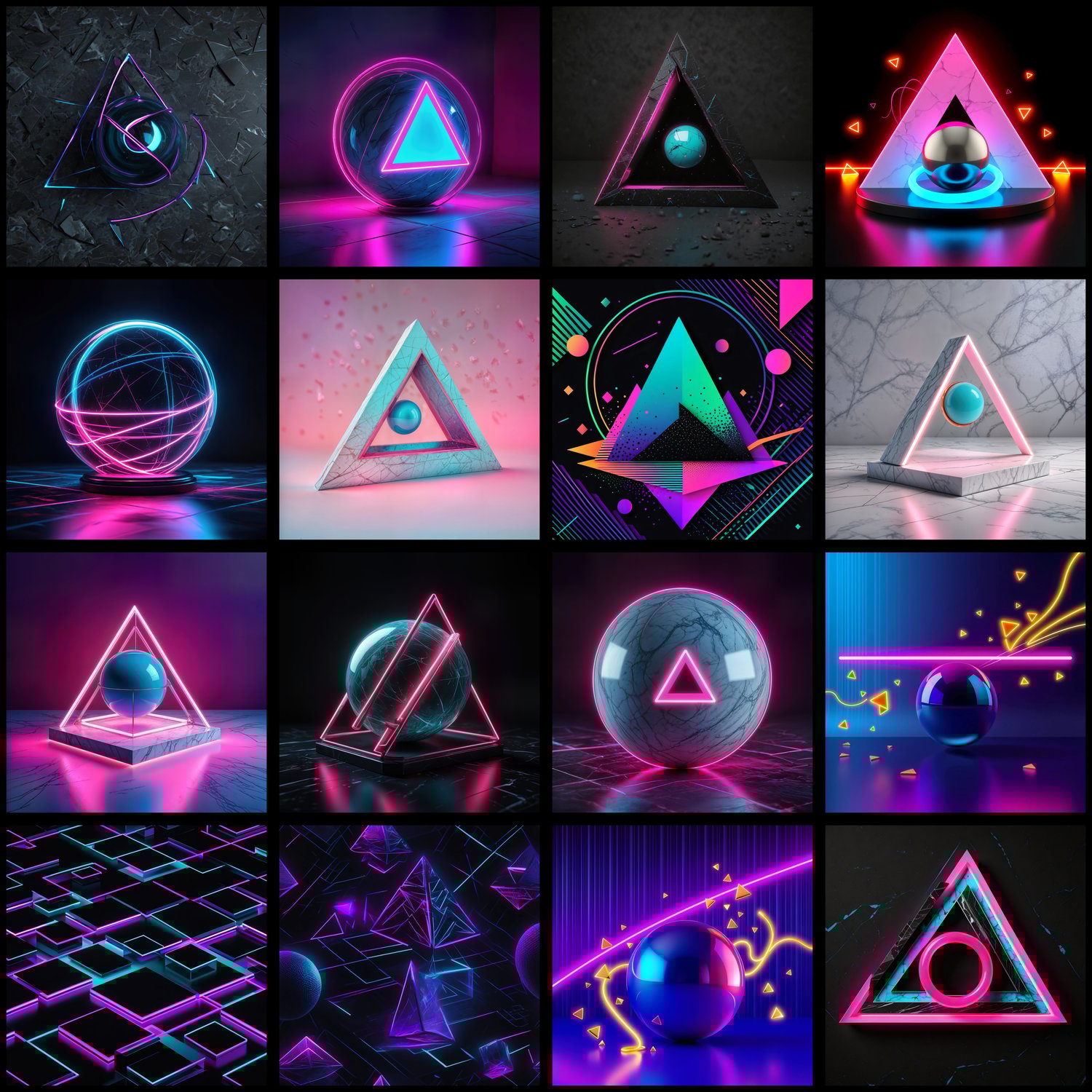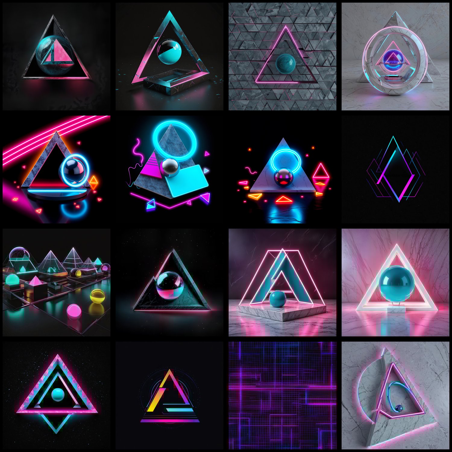 Explore abstract forms and geometric compositions in our Synthwave Shapes & Designs collection! This bundle includes 81 high-resolution artworks (4000px, 300 DPI) perfect for album covers, book covers, YouTube thumbnails, social media graphics, and print projects.