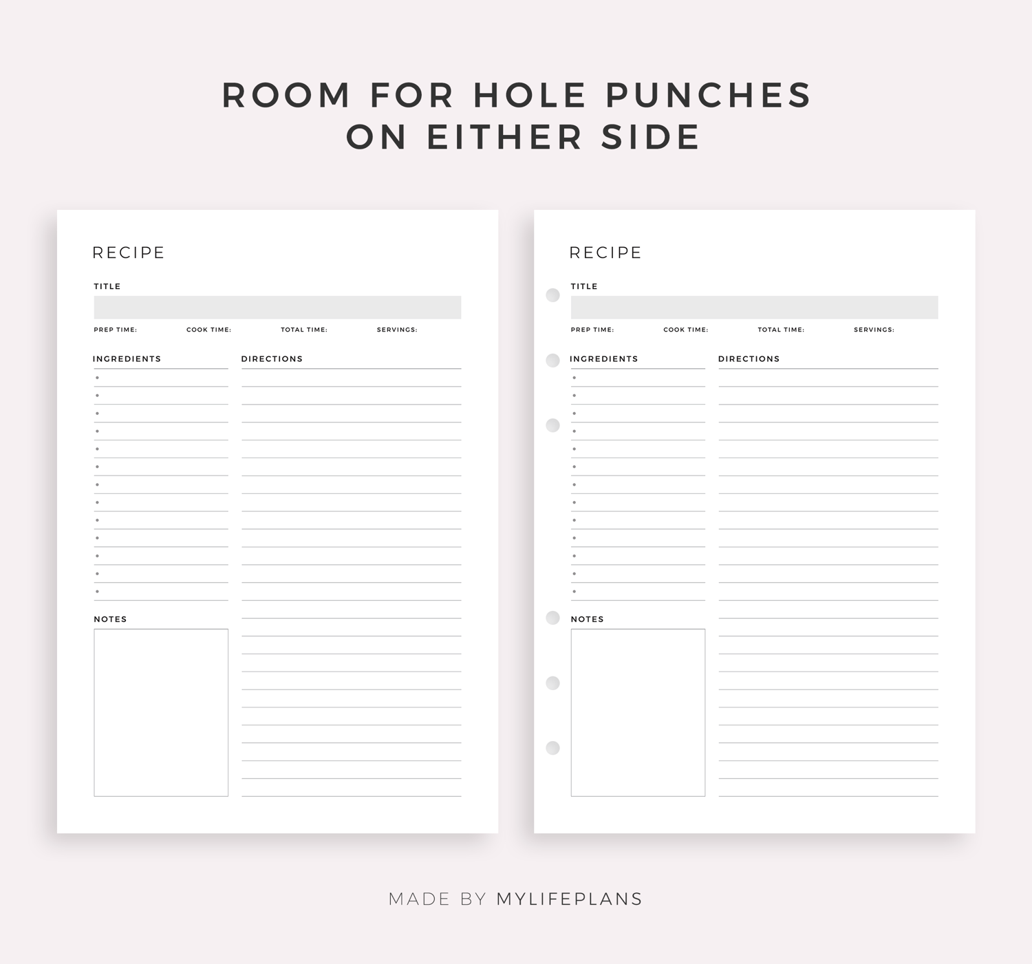 Printable Recipe Template, Recipe Book, Blank Recipe Page, Recipe Card, Home Cook Book Journal