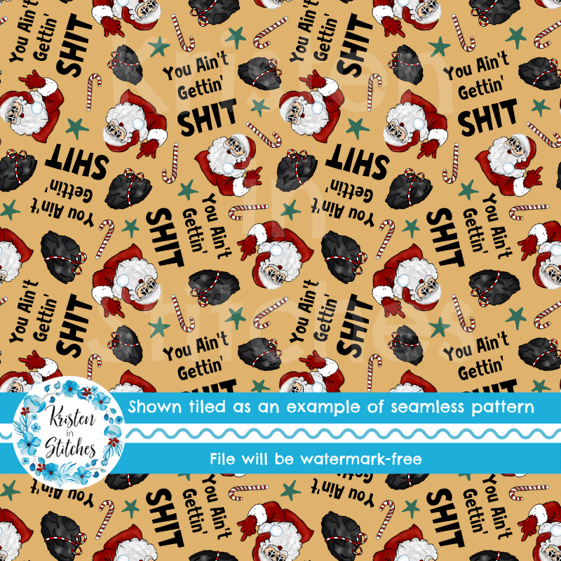 You Ain't Gettin' Shit Santa's Naughty List Funny Sarcastic Christmas Seamless Pattern