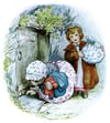 NOTE: Mrs. Tiggy-winkle has been described as one of Potter's most positive creations, but critics consider Lucie an artistic failure. Although Mrs. Tiggy-Winkle is set in an identifiable place and time period, the tale is mythologized by reaching back to an age when household chores were performed manually and without the aid of modern mechanical inventions. The simple dwellings, rustic pathways, and stone fences enhance the tale's timeless aspect and suggest an unchanging countryside and its way of life.