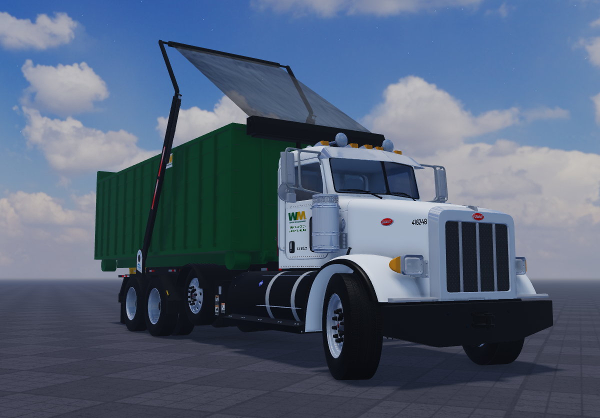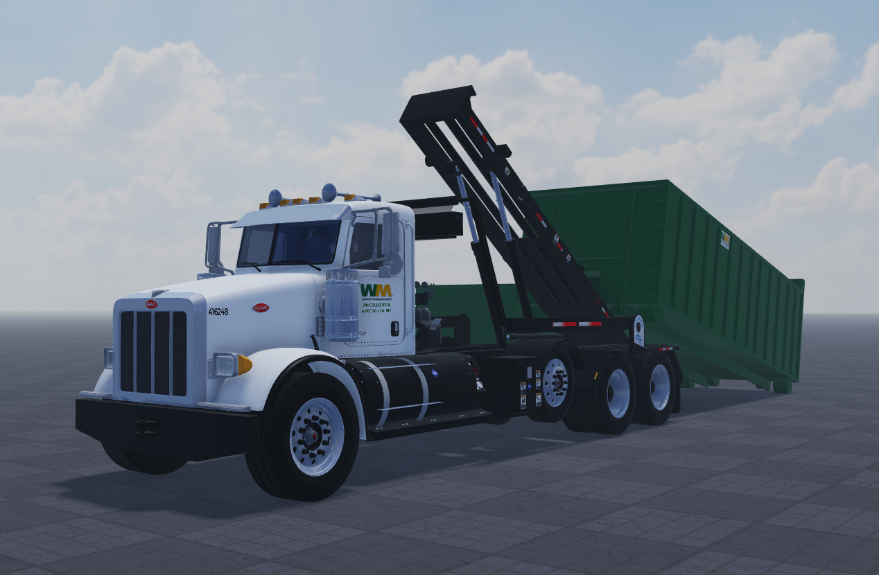 Sup guys, new rolloff truck with a system because my old one was lowkey weird so yea. I hope you have fun with this because I loved the build. But the controls are straight forward, I will have a Demo video below on how to use the rolloff properly. It shouldn't be too much of a hassle. It also have a working tarp if you're into all that stuff. **THE ONLY **Difference is this one has a weld and the clicker for that is on the Passenger side, once you hoist the container onto the frame just click that button to weld it