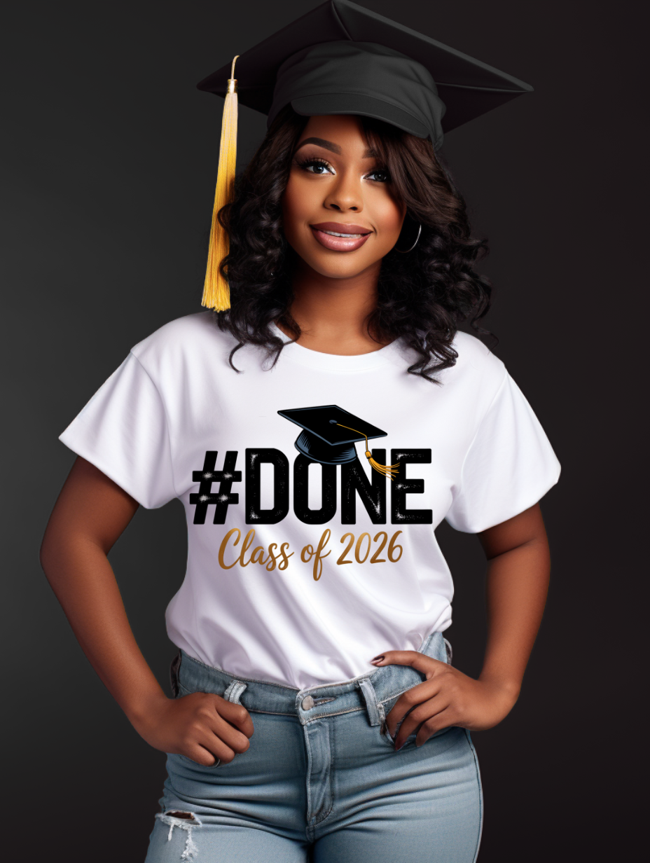 Celebrate your grad with this bold #DONE Class of 2026 design 🎓✨ Perfect for T-shirts, mugs, tumblers, banners, and more! This digital PNG is ready to download and create unforgettable graduation keepsakes.