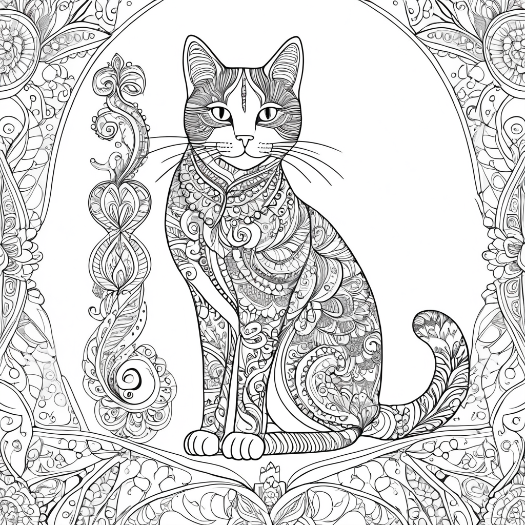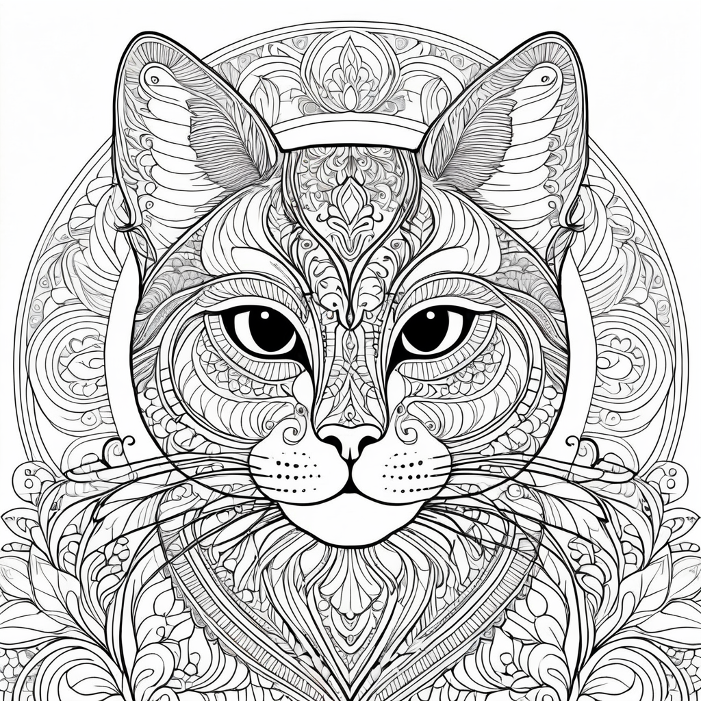 Unleash your creativity with our 5-Page Cat Mandala Coloring Set! Perfect for cat lovers and coloring enthusiasts, this set features intricately designed mandalas combined with the charm of our feline friends. From beautifully detailed cat faces like this one to full-body cat designs, each page offers a relaxing and immersive experience.