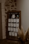 Vous me transmettez simplement la répartition de vos invités par table, et je vous fournis un fichier PDF finalisé, prêt à imprimer et à installer sur le support de votre choix (cadre, miroir, plaque…).