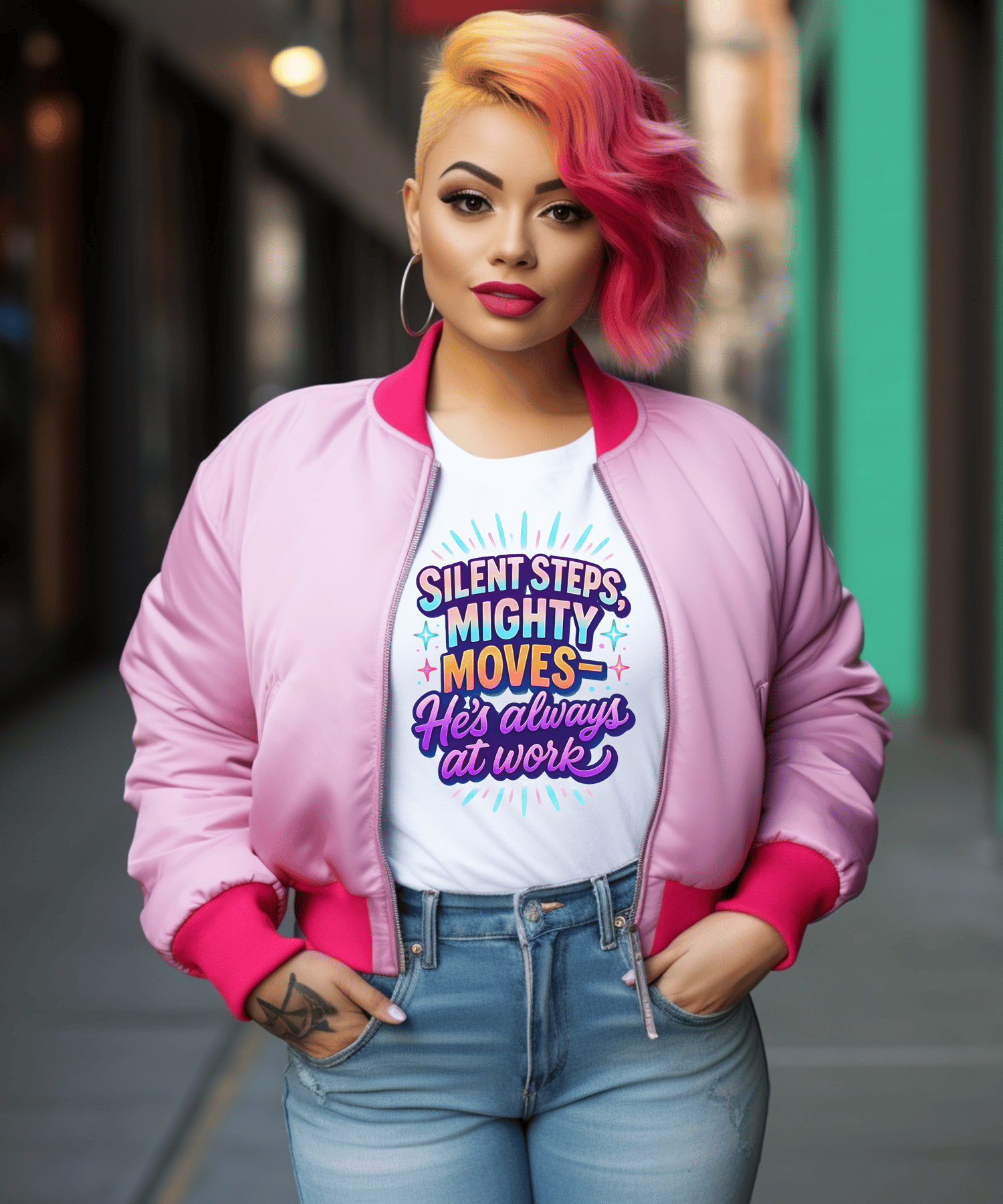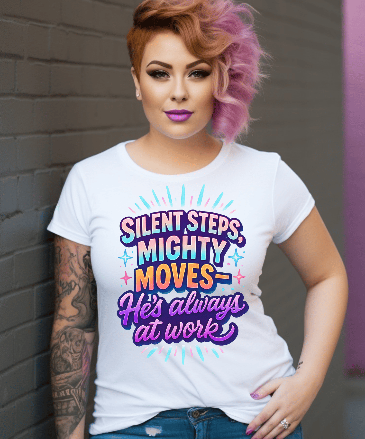 Let your faith speak louder than your fears. This uplifting design, “Silent Steps, Mighty Moves – He’s Always at Work,” blends calm confidence with bold trust in God’s plan. A perfect reminder for shirts, mugs, journals, and more.
