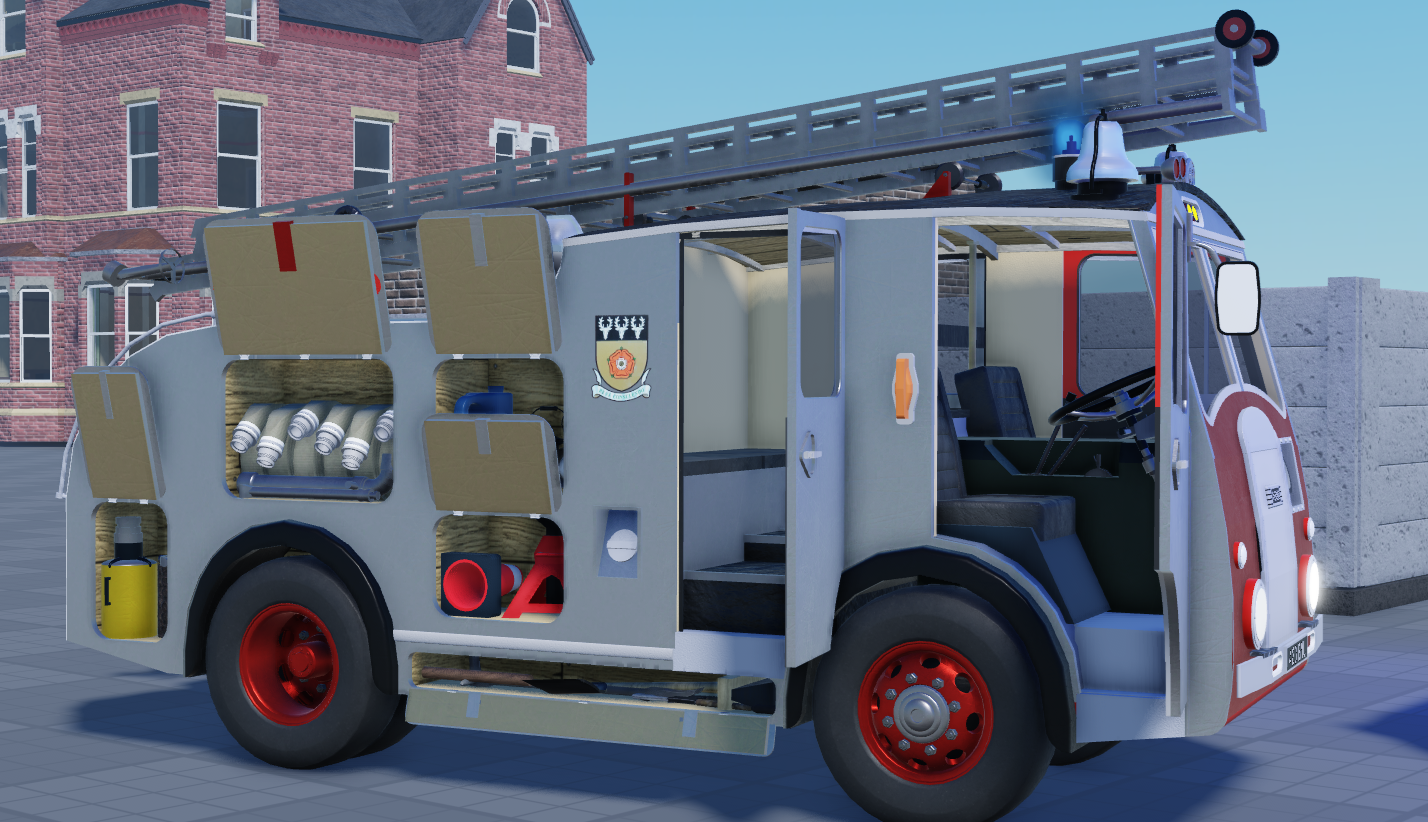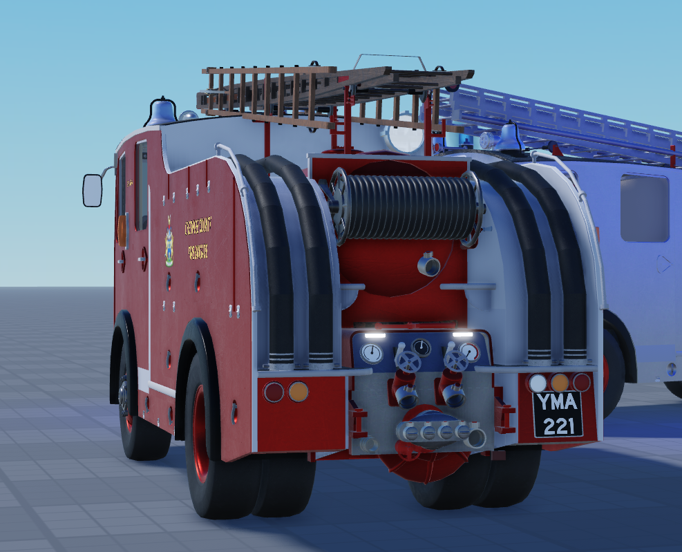 This product contains 2 1950s era Dennis F8 fire engines, based on those used by Derbyshire and Cheshire county fire brigades.