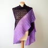 Size S (L) finished dimensions: Wingspan of 146 (200) cm (57 ½ (78 ¾) inches) and a depth of 68 (90) cm (26 ¾ (35 ½) inches), measured after blocking. The shawl shown is in size L.