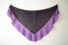 Arugula is a shawl in 2 sizes, designed to use the lovely rustic tweedy yarn pictured in the sample. In this design, it is paired with a flouncy ribbed ruffle in a contrasting solid color. A relatively mindless knitting project that gives a wonderful end result.