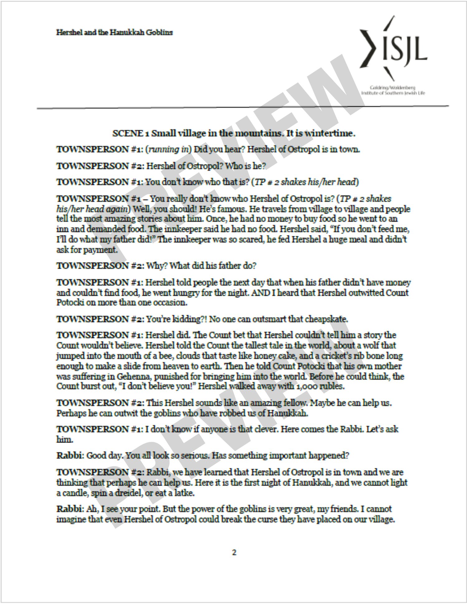Hershel and the Hanukkah Goblins: The Play