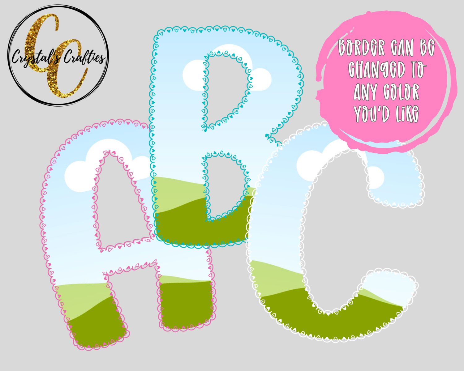This alphabet frame set features cute scalloped edges with heart details, perfect for creating personalized designs in Canva—no design experience required.