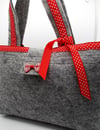 Hand crocheted with felt, satin ribbon, metal and leather embellishments