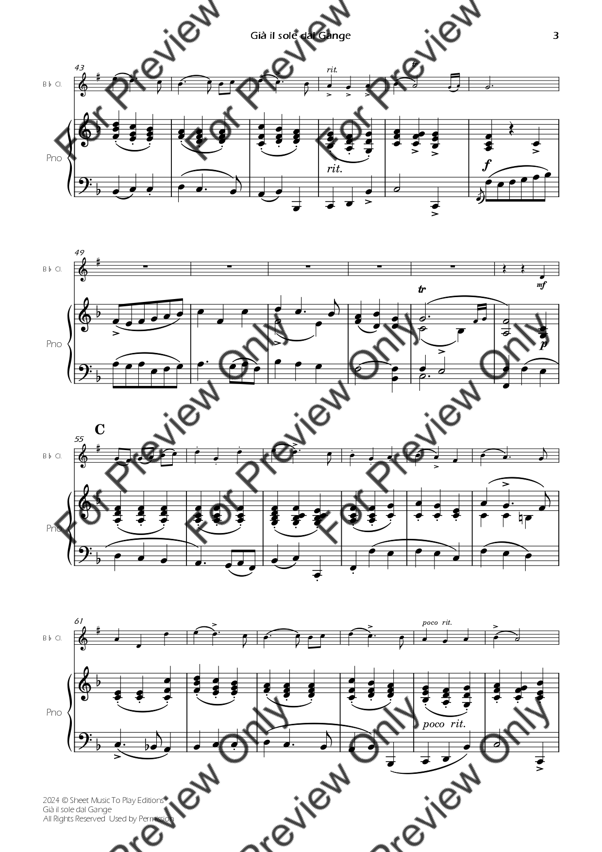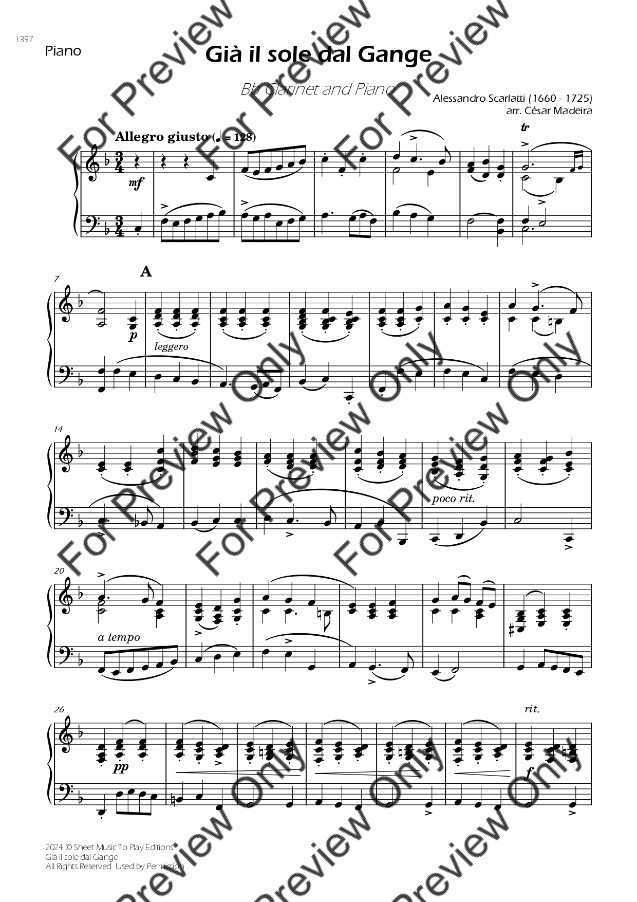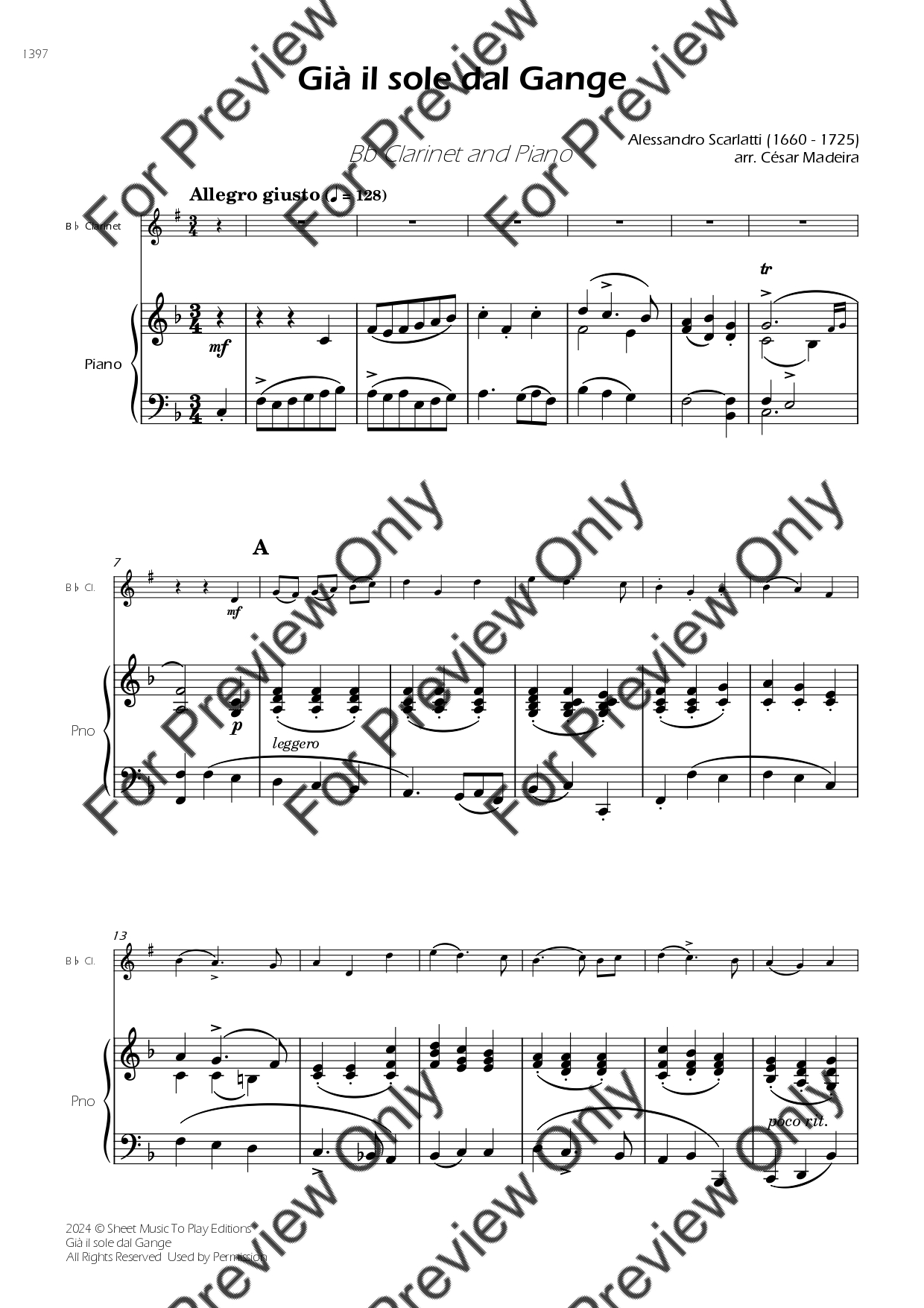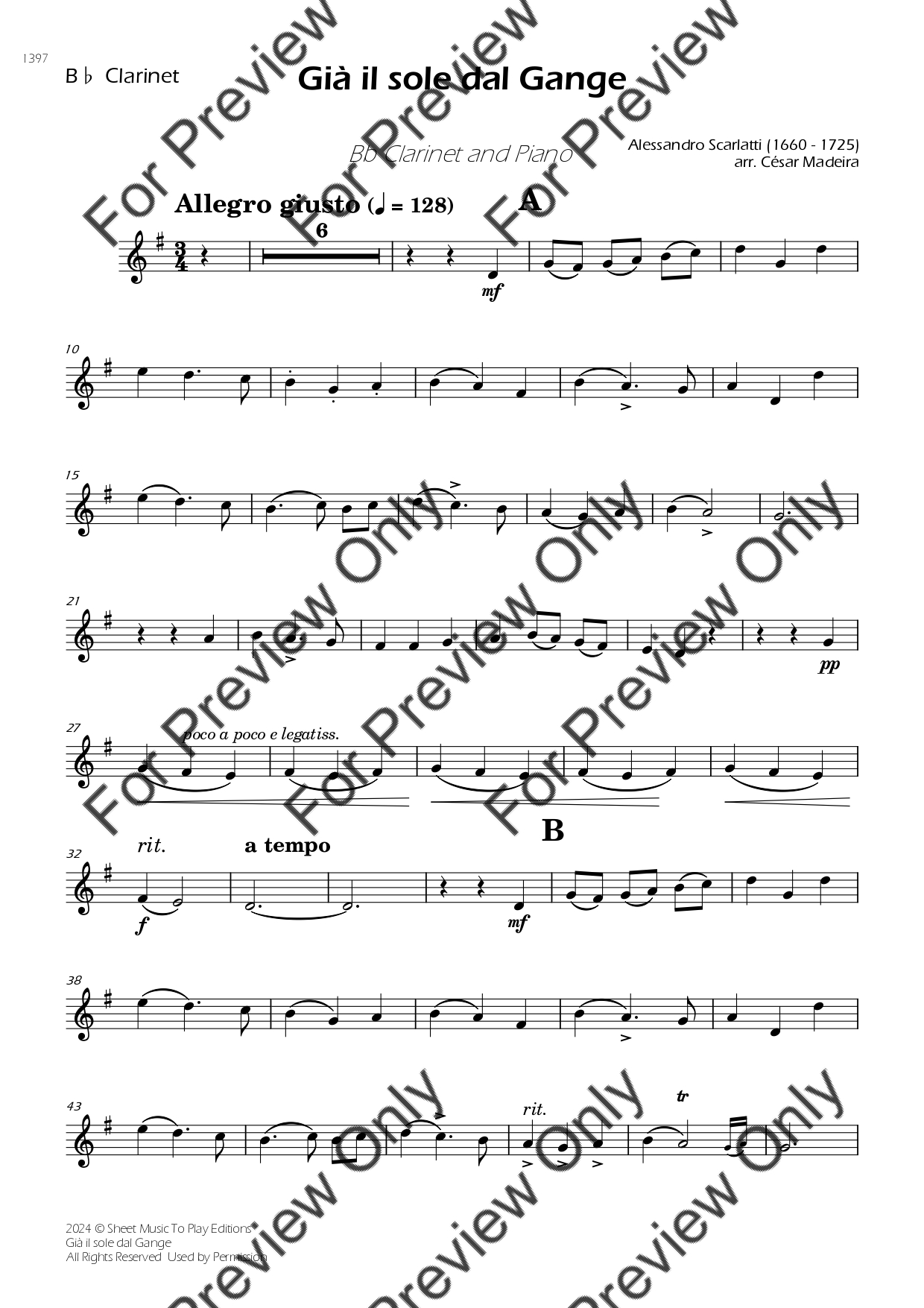 Già Il Sole Dal Gange by Domenico Scarlatti. Arrangement for Bb Clarinet and Piano. With Full Score and Individual Parts. Have fun!