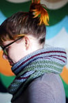 stripy garter stitch cowl in three versions, with tons of color options and modification notes to customize it
