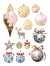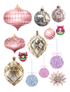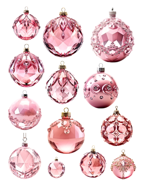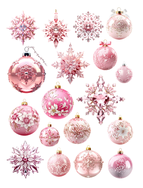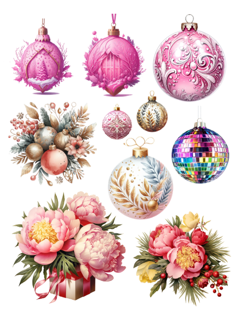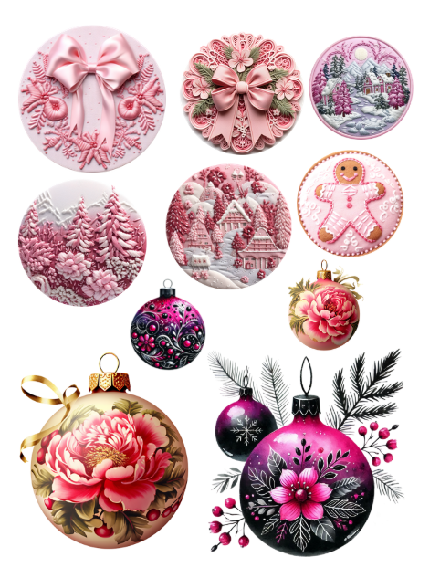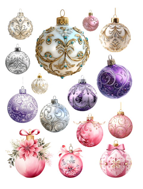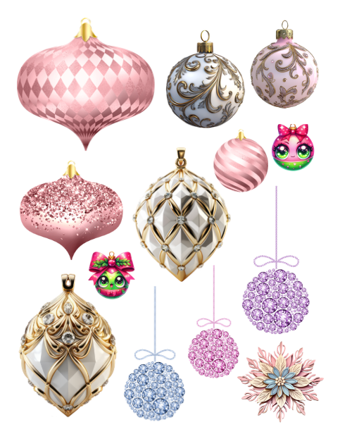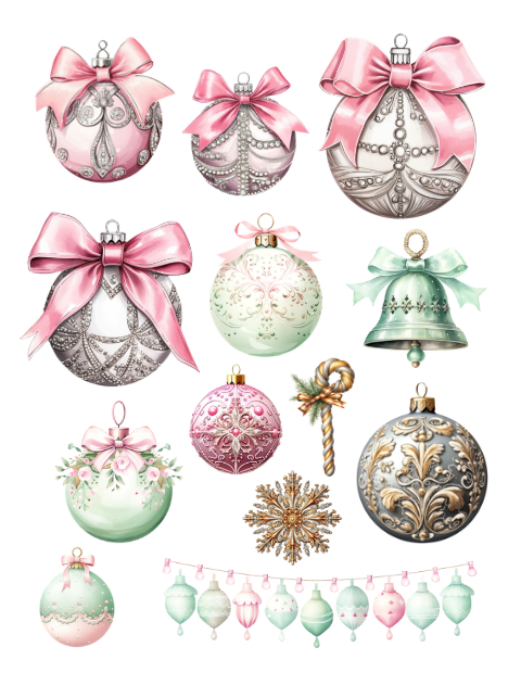 Pink and Pastel Christmas Ornaments Ephemera to Cut and Collage PDF Printable Version