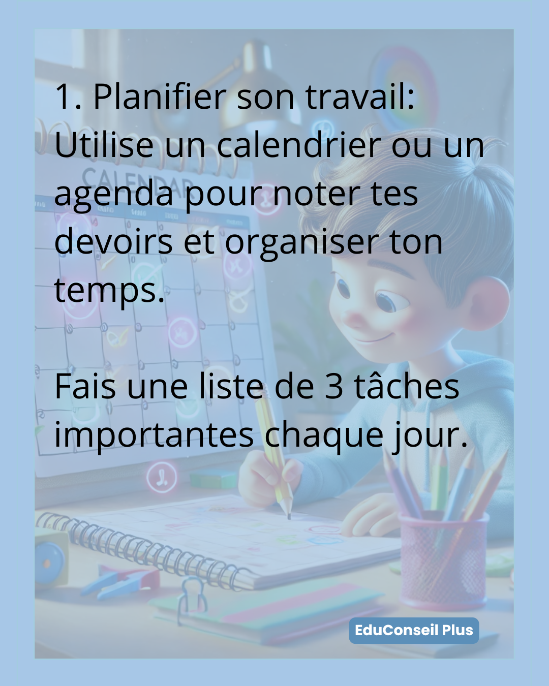 - Des cartes de stratégies d’apprentissage (ex : planifier son travail, gérer son temps, se concentrer, réfléchir sur ses erreurs…).