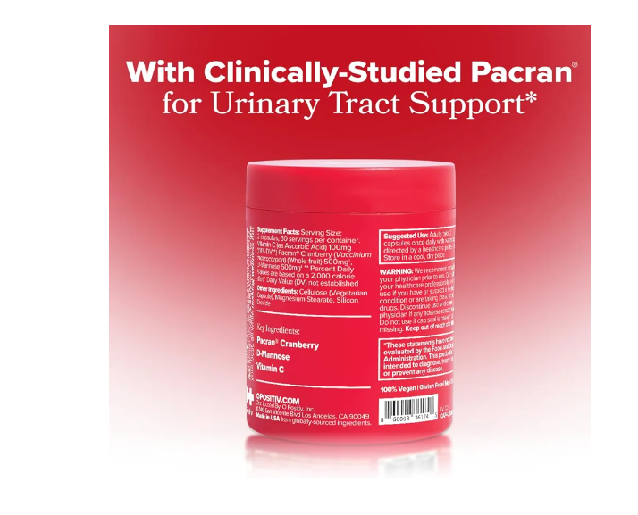 O Positiv URO Urinary Tract Health Supplement for Women, 60 Count (Pack of 1) - Urinary Support Vitamins with Pacran Complete Cranberry Extract, D-Mannose, & Vitamin C - Vegan & Gluten-Free