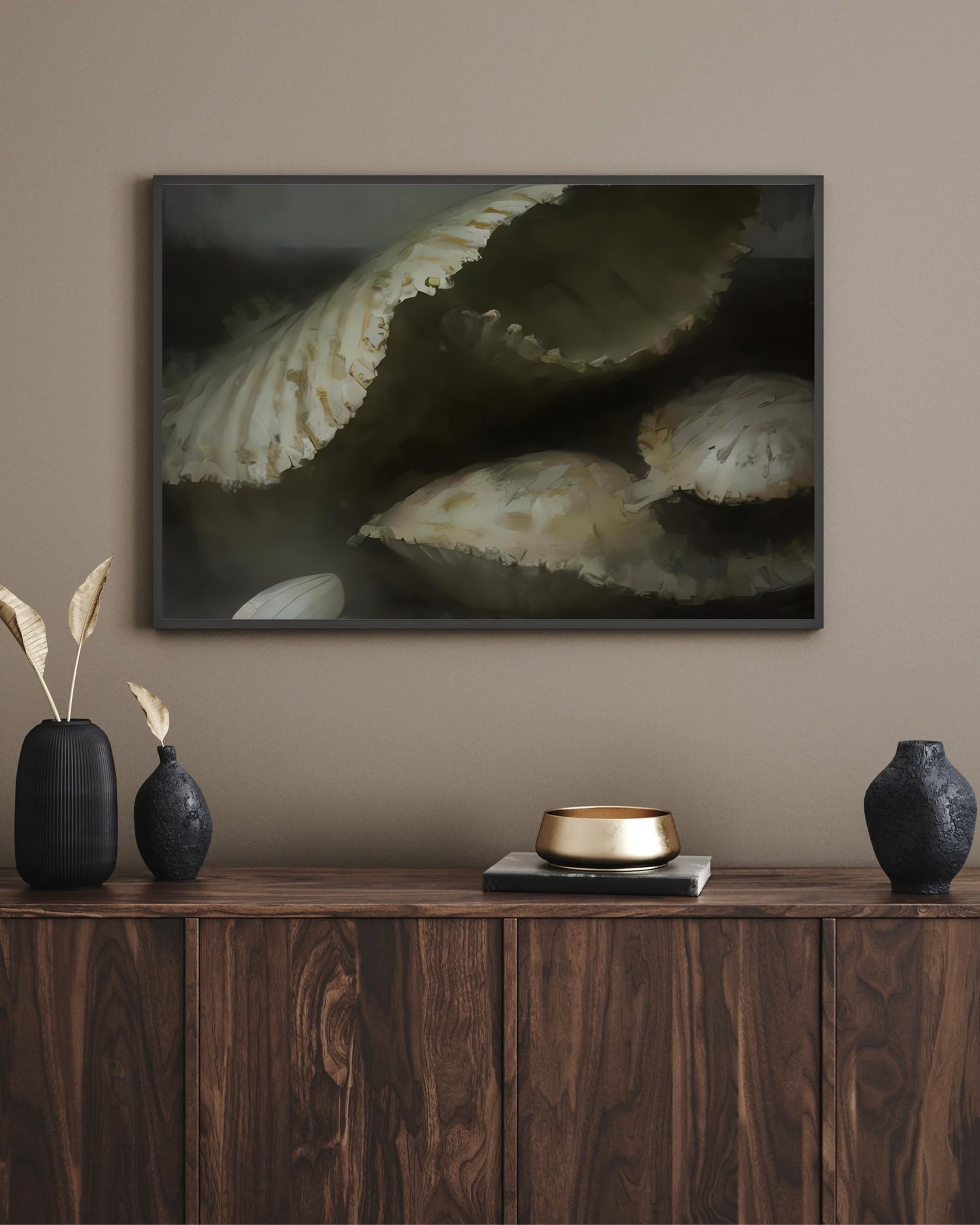 Wabi sabi wall art printable created for Japandi and minimalist spaces, shaped by soft earth tones, natural texture, and organic form. Bring stillness home with a presence that does not demand attention, but gently holds it.