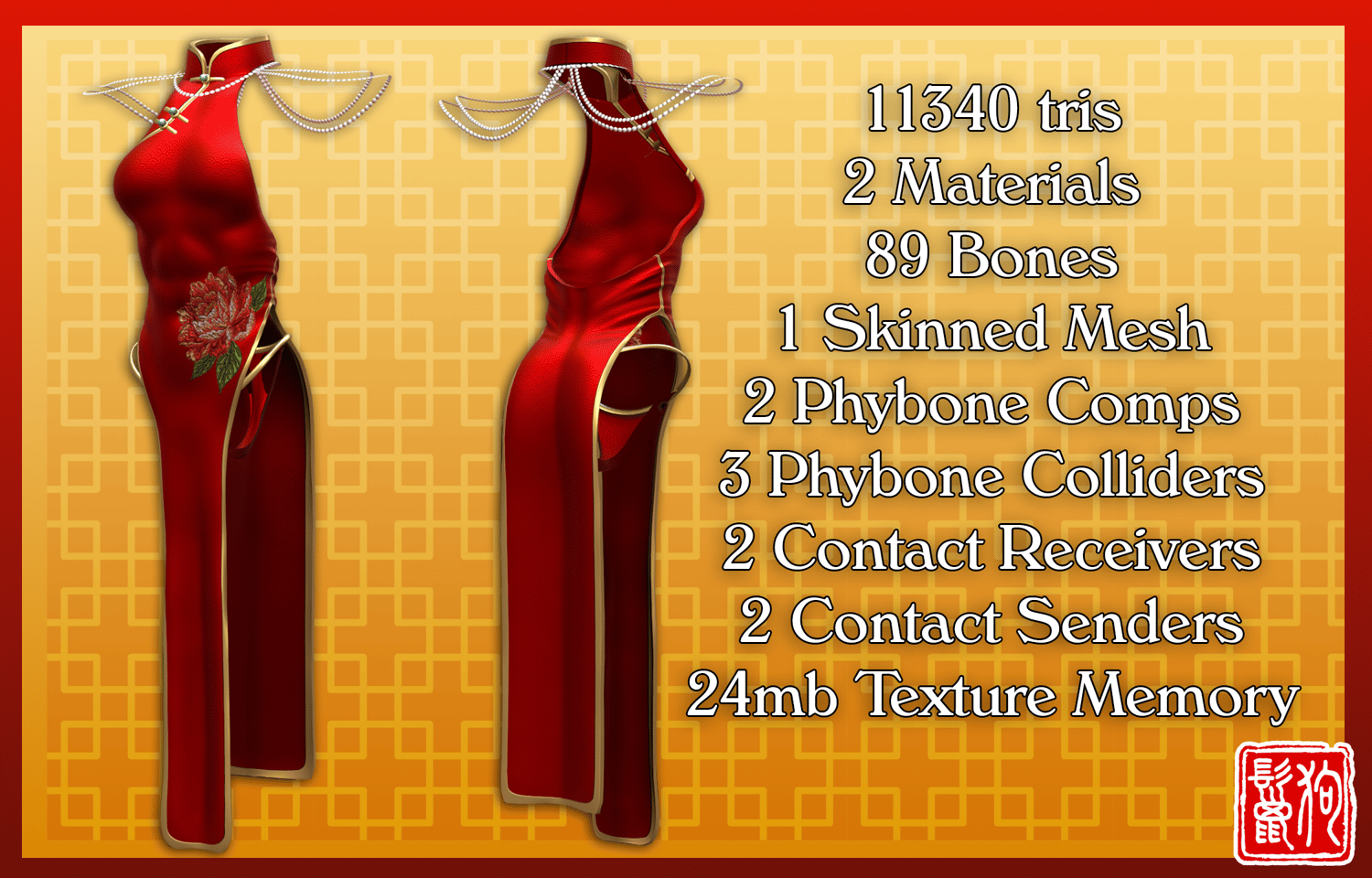 - The Unity Package comes with 15 Qipao base preset materials and 5 pearl materials for you to mix and match!