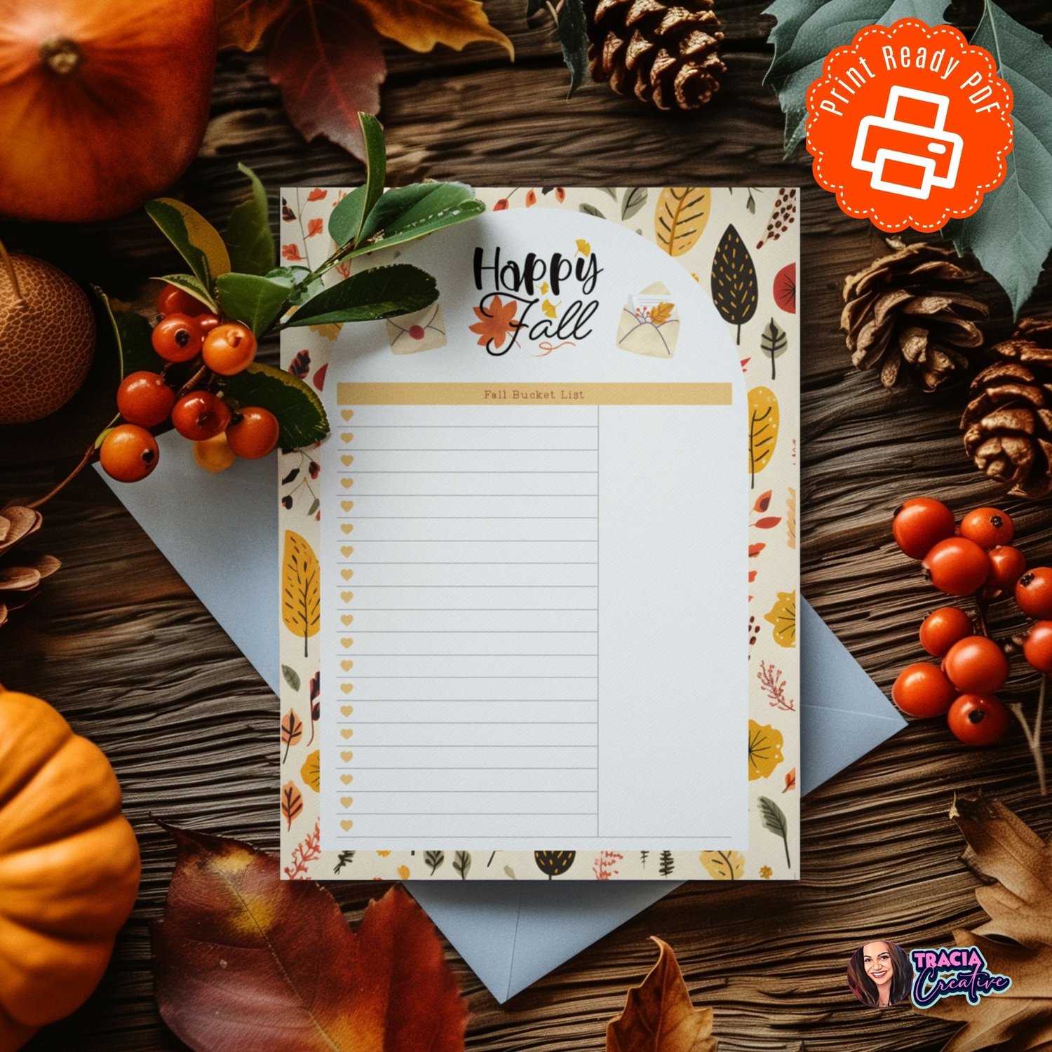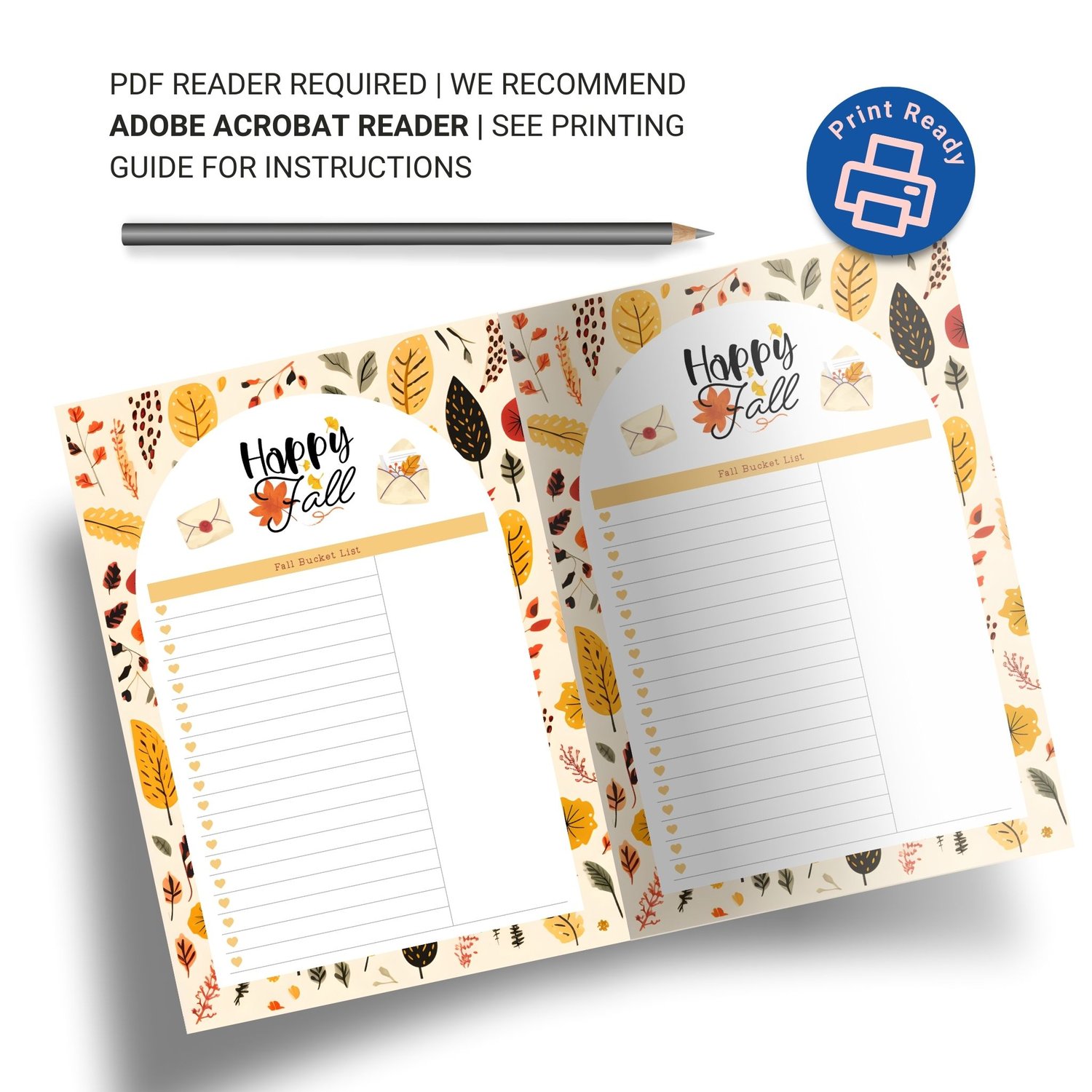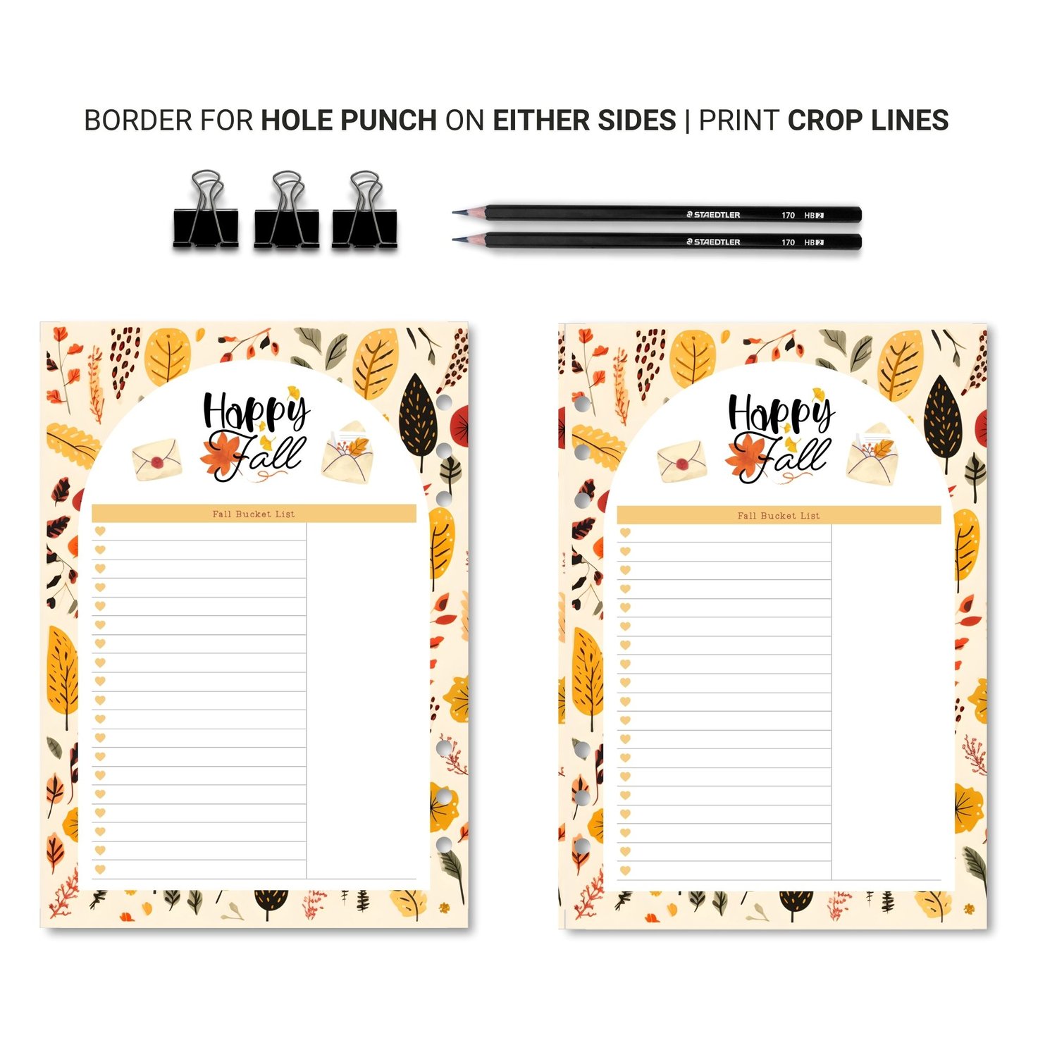Fall Bucket List Planner Insert - Printable Digital Download PDF