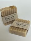 3 Sugar: Tallow, olive oil, coconut oil, water, sodium hydroxide, honey, molasses, and maple syrup, topped with raw sugar and vanilla bean powder.