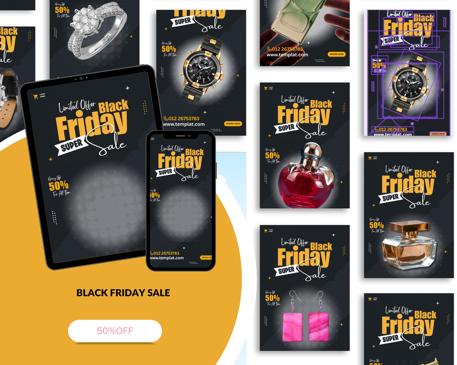 - High-Impact Design: The elegant combination of dark textures, bold yellow/gold typography, and clean layouts ensures your sale announcement stands out in a crowded feed.