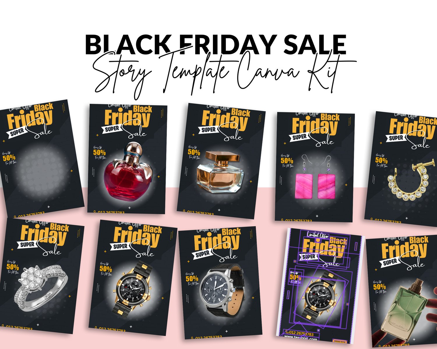 Black Friday Sale Instagram Story Template Canva Kit (Dark/Gold Aesthetic)