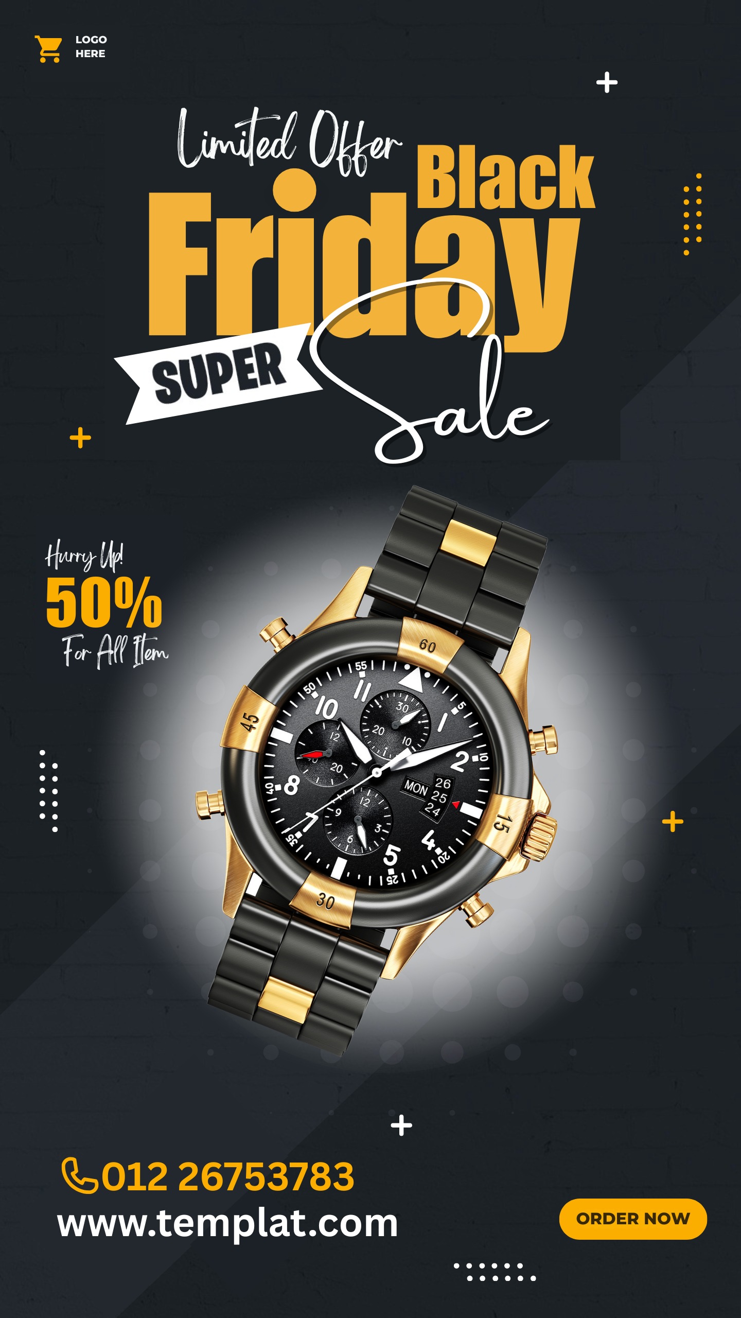 Maximize your holiday revenue with the Black Friday Super Sale Template designed for Instagram Stories and Reels. This professionally crafted template captures attention instantly with its luxurious dark grey/black and bright gold color palette, creating a sense of urgency and premium value. Perfect for e-commerce, luxury brands, or any business running a high-stakes limited-time promotion. Stop wasting time designing from scratch—just plug in your offer and watch the sales roll in!