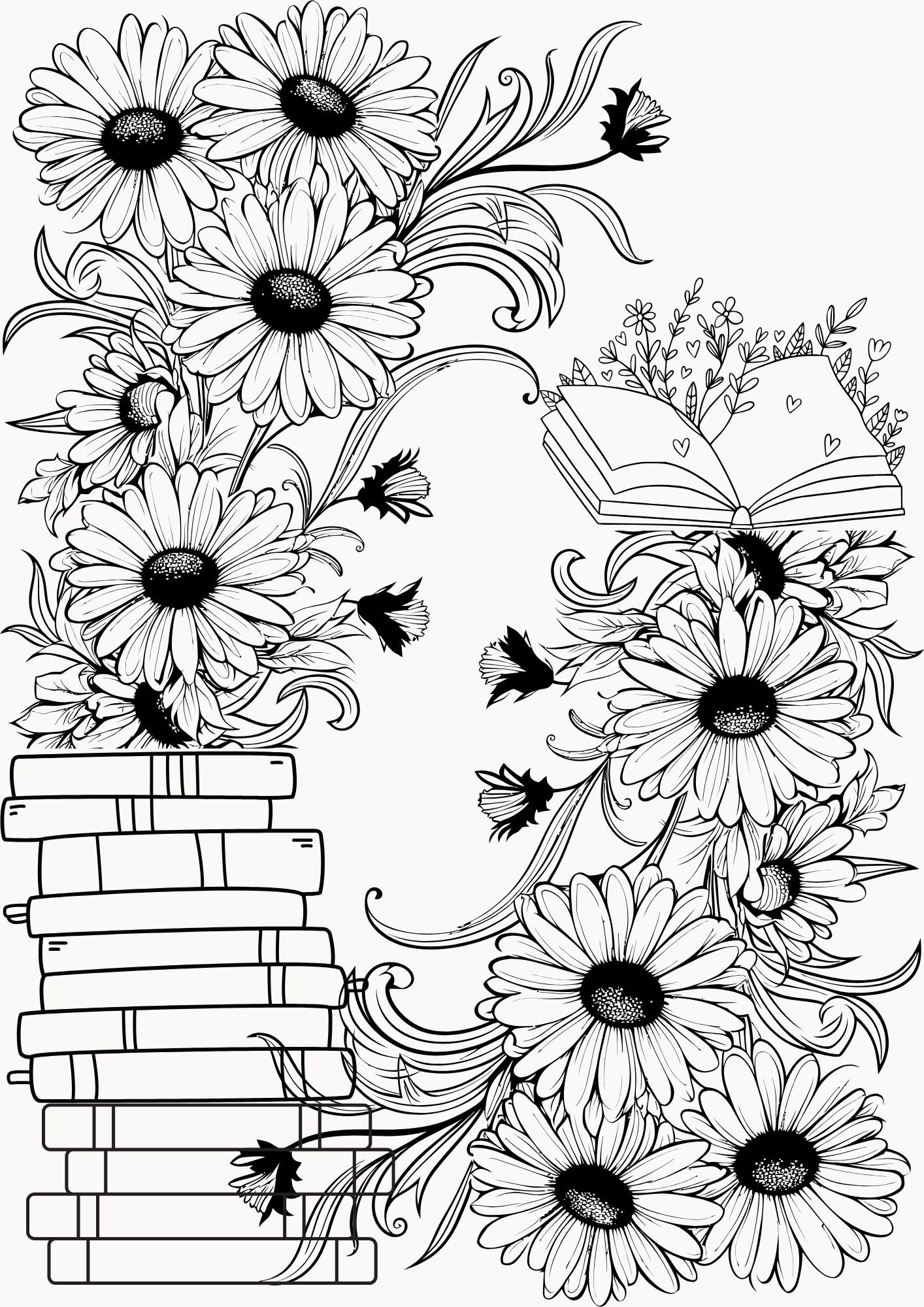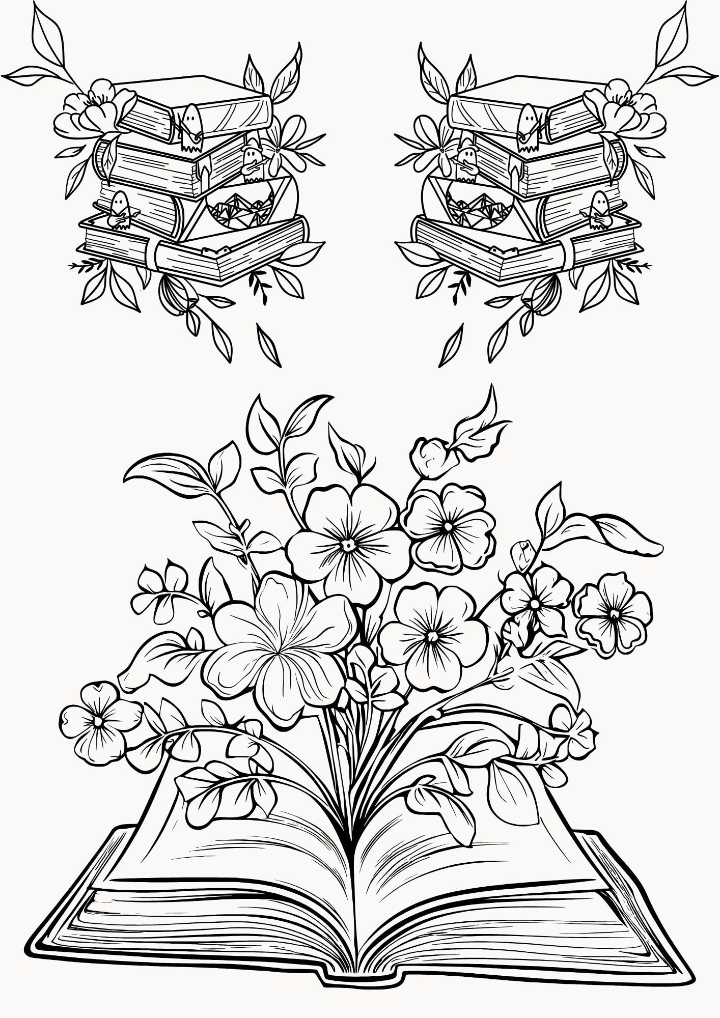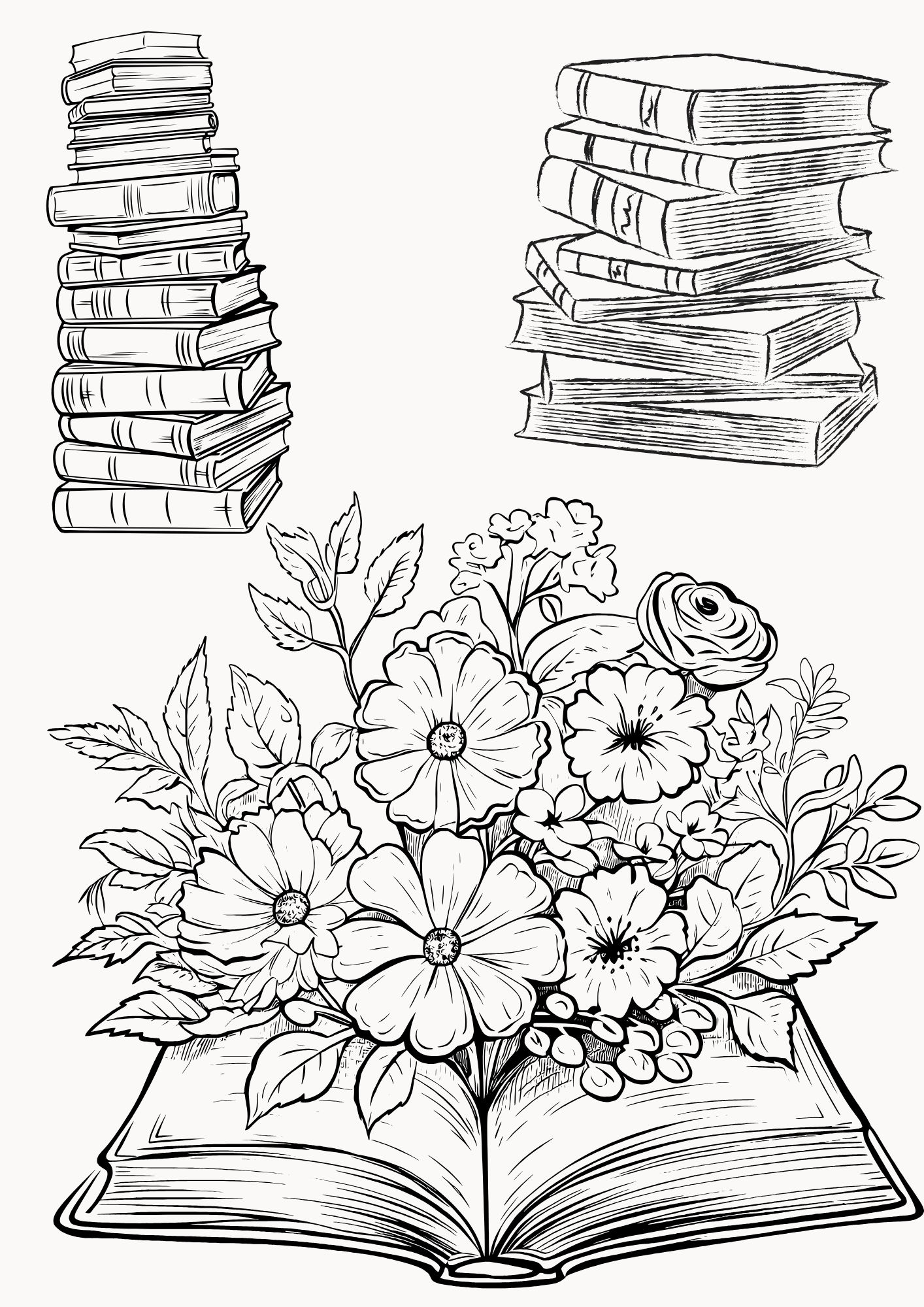 From delicate wildflowers weaving through antique tomes to bold bouquets perched beside your next great read, every page invites you to bring your own touch of magic. The designs are single-sided for easy coloring, with plenty of open space for creativity—perfect for colored pencils, markers, or gel pens.