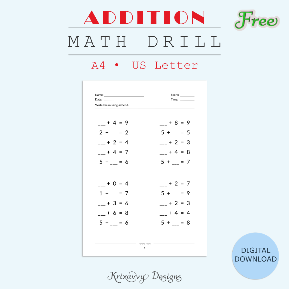 FREE | Math Worksheet | Addition Worksheet | Printable PDF | Math Practice | Math activity | Addition Practice | Instant Download | Free Missing Addend Worksheet | Addition math Worksheet | Find the Missing Number | Early Math Skills | Addition Practice Printable | Free math download |1st Grade Math freebie | Homeschool Math Worksheet