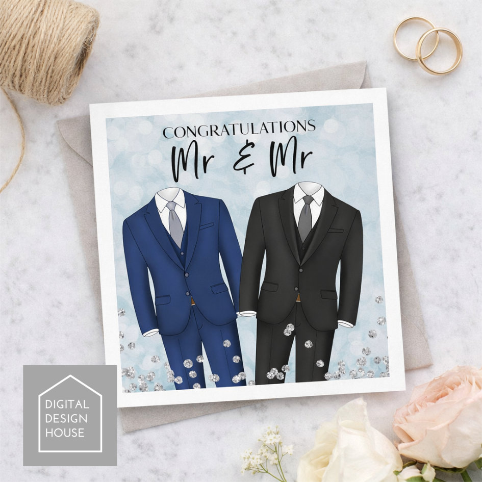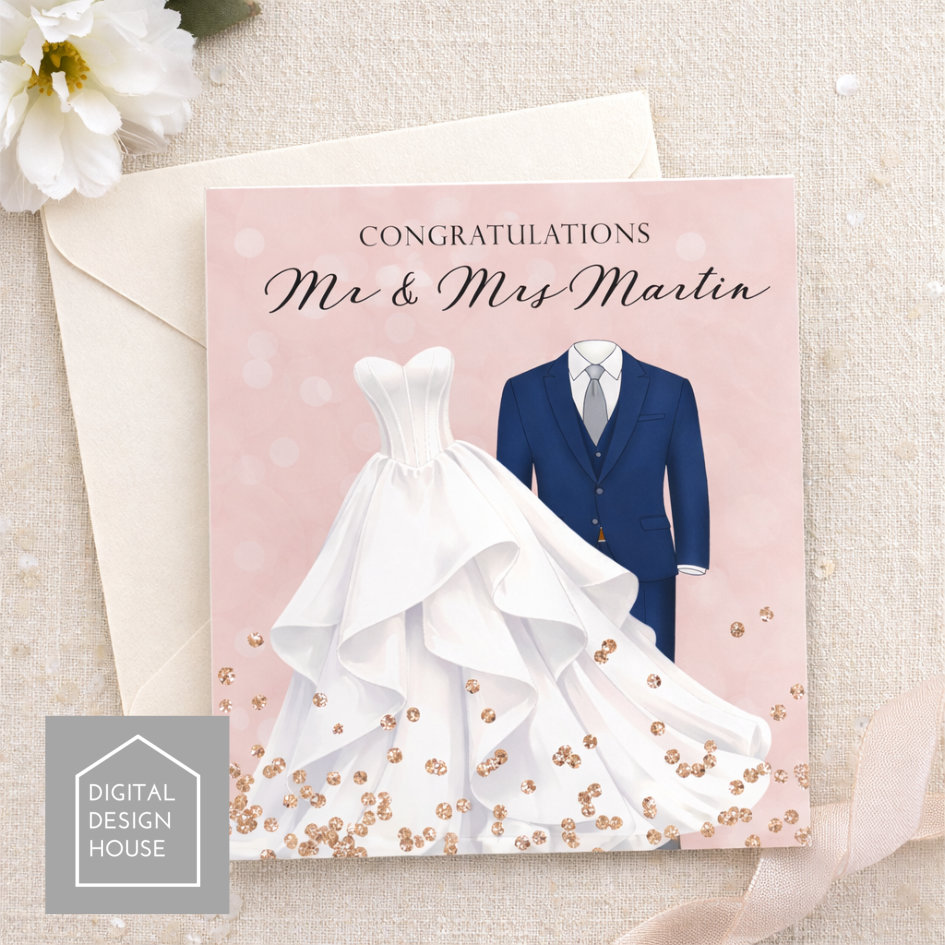 Perfect for designing cards for Mr & Mrs, Mr & Mr, or Mrs & Mrs weddings. Simply choose a background, add outfits, and finish with a confetti overlay to create your own unique design. ✨ Endless combinations to suit any couple