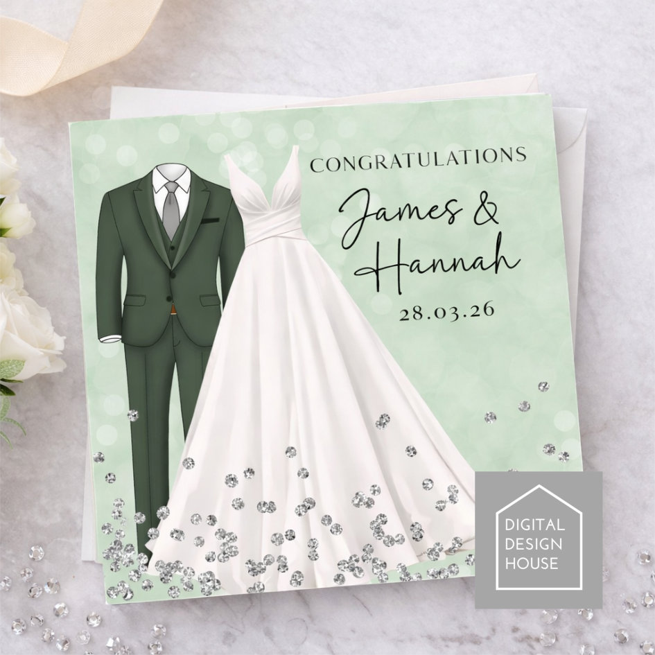 This digital design kit lets you easily create custom wedding congratulations cards, invitations, prints, and digital designs by combining dresses, suits, backgrounds and overlays.