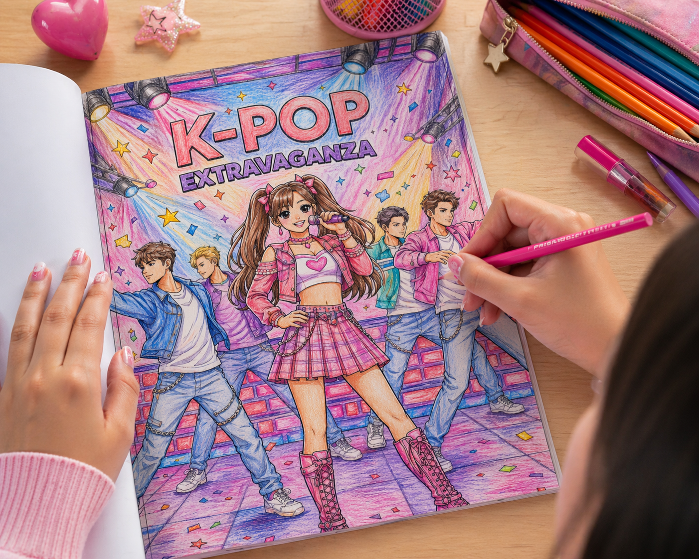 K-Pop Coloring Book for Teens & Adults – Cute Idol Fashion, Concert Scenes & Fun Lifestyle Pages