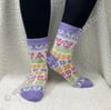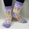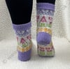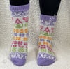 Please note stranded colorwork does not have the same stretch to it that a plain stocking stitch sock does. For the best fit please choose the size closest to your foot circumference.
