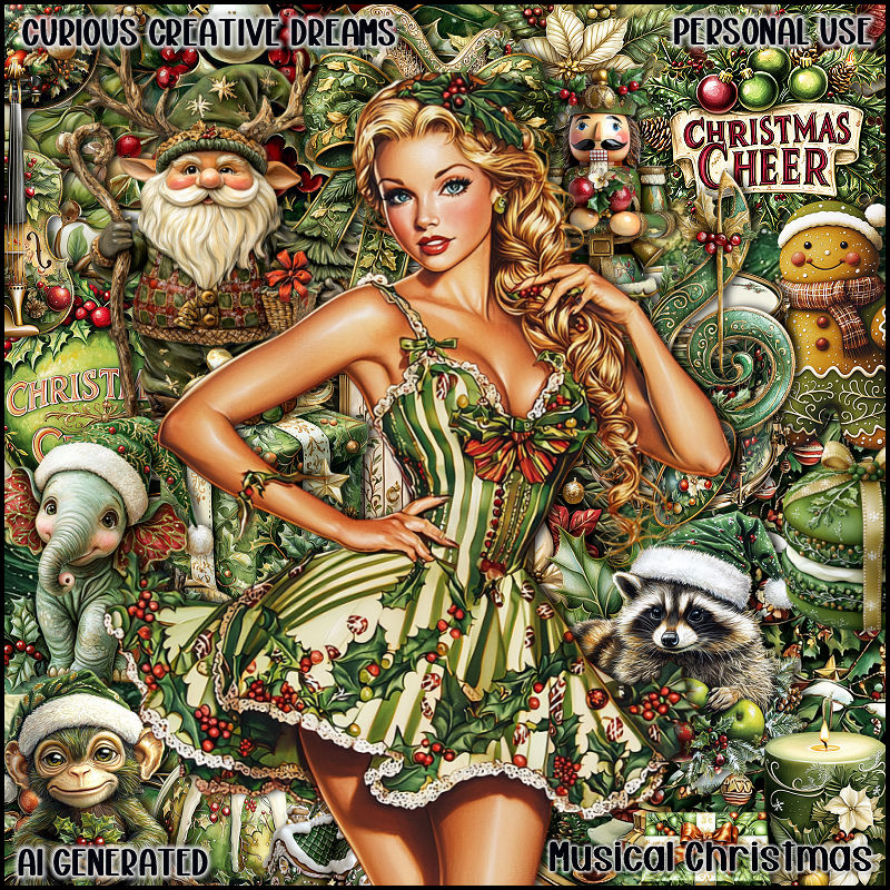 Musical Christmas comes with 99 Elements , 10 Frames , 12 papers , 3 AI Generated Tubes