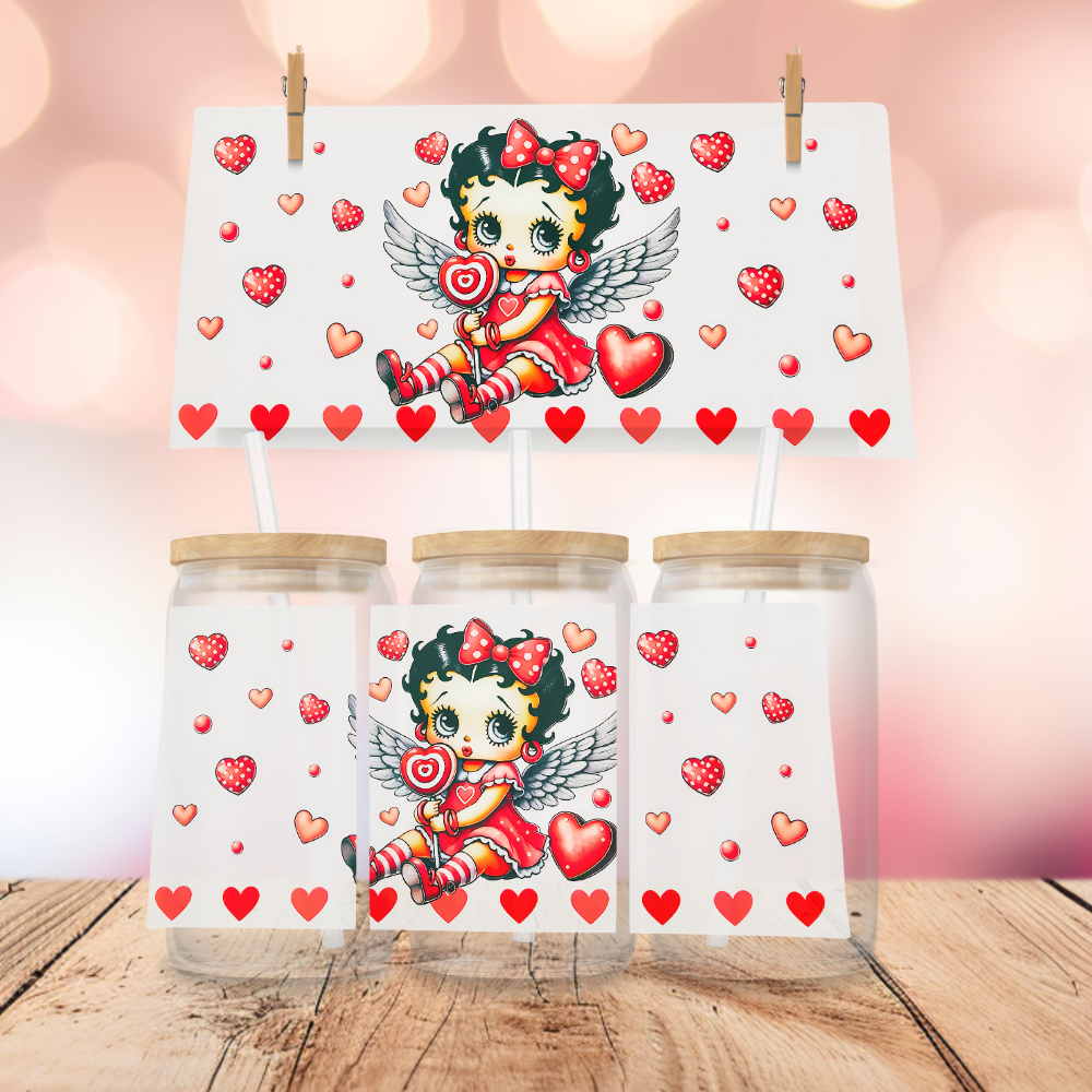 Add a sprinkle of sweetness and charm to your cup collection with this adorable Little B with Wings & Hearts Wrap! Designed to fit perfectly around 16 oz Libbey glass cans or tumblers, this design features the lovable Little B with angel wings, surrounded by fluttering hearts—bringing soft, magical vibes to every sip.