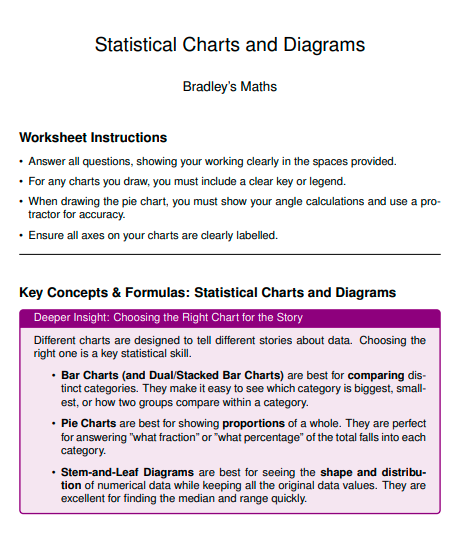IGCSE Extended Level Maths: Statistical Charts and Diagrams (Worksheet & Model Answers)