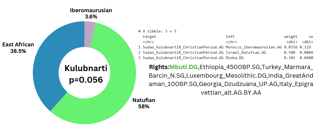 Breaking down the ancestry composition into more recent groups, the majority of nubian ancestry is Natufian, with minor iberomaurusian and east african contributions.