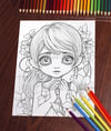 Flower Pixie Cutie Girl Coloring Page, Adults & kids- Instant Download - Grayscale Coloring Page - Gift, PDF